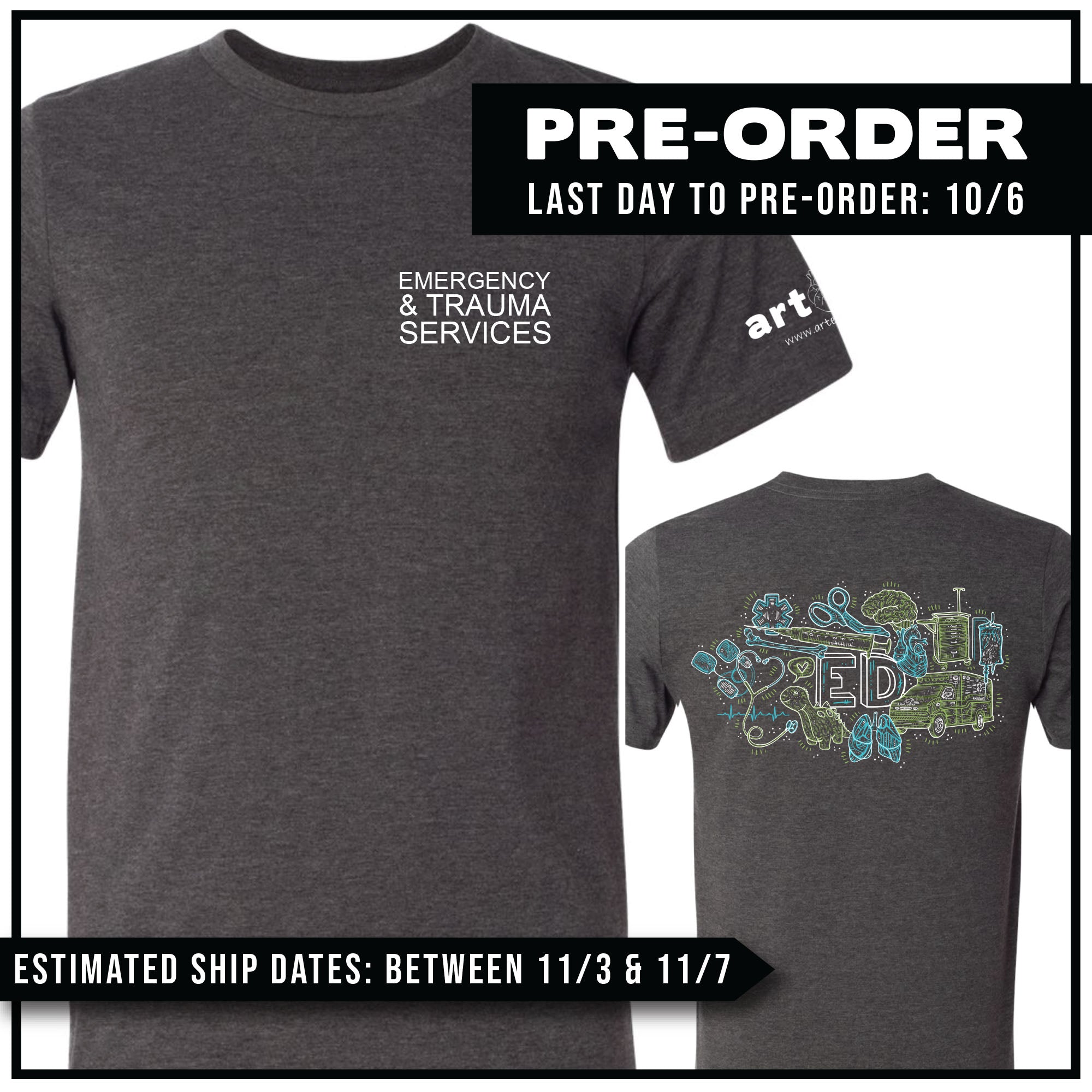 FRONT LEFT CHEST: "Emergency & Trauma Services"