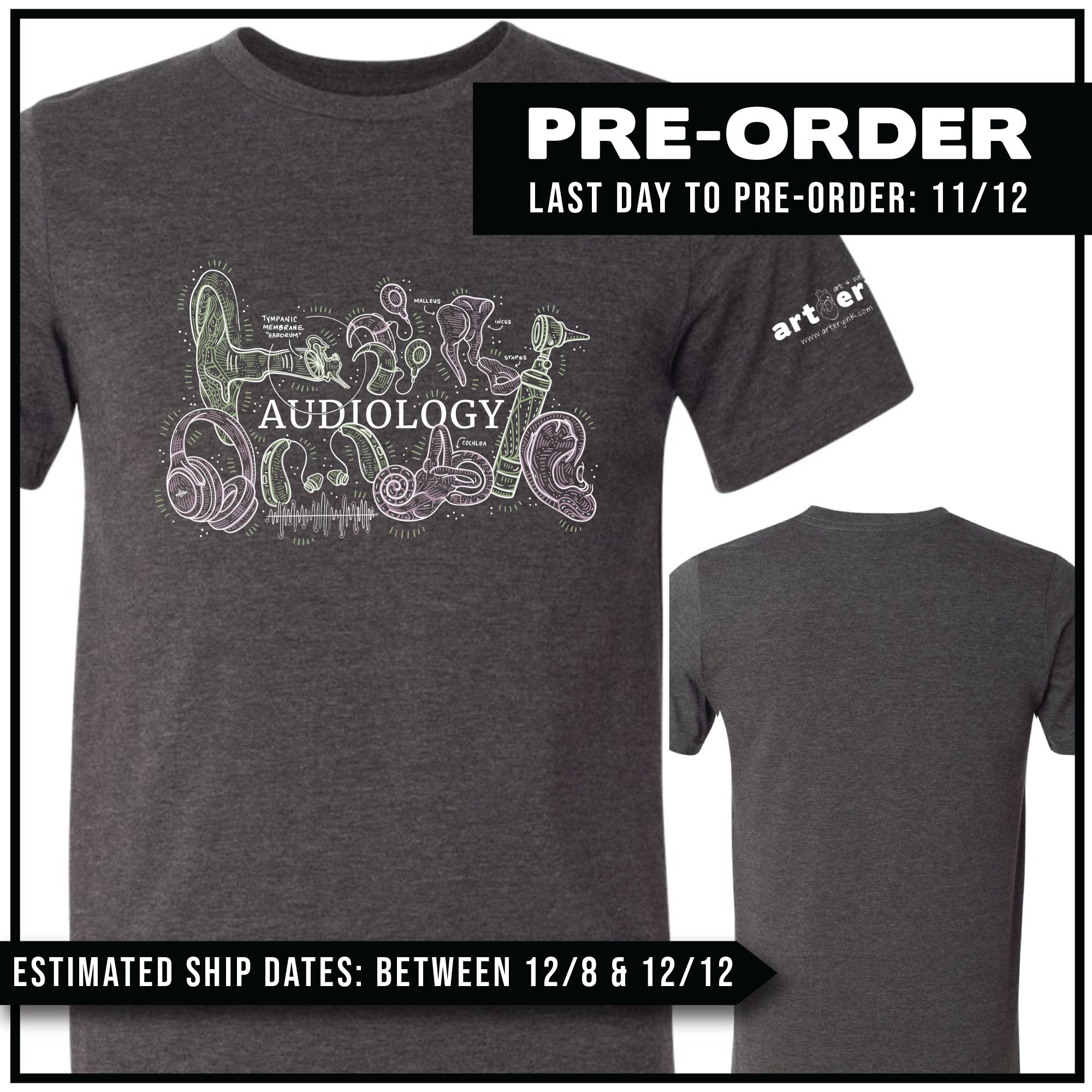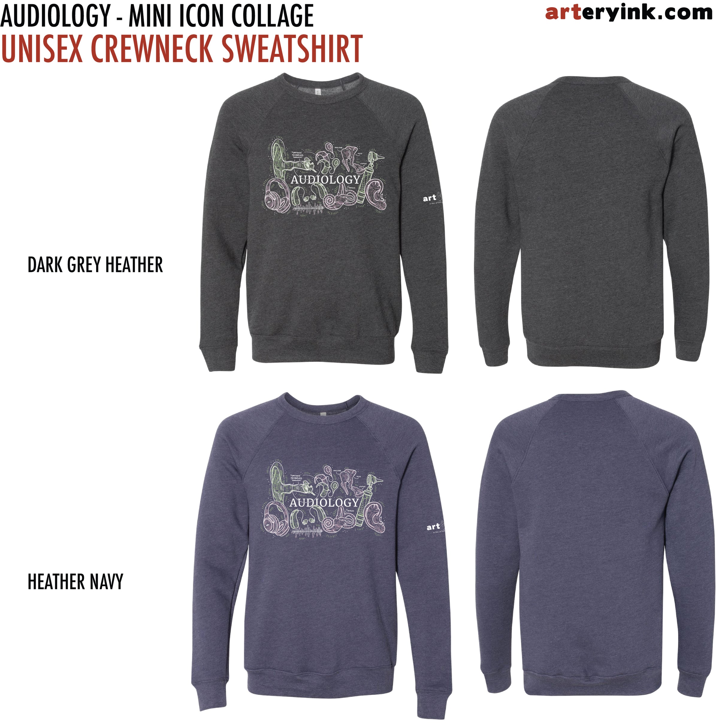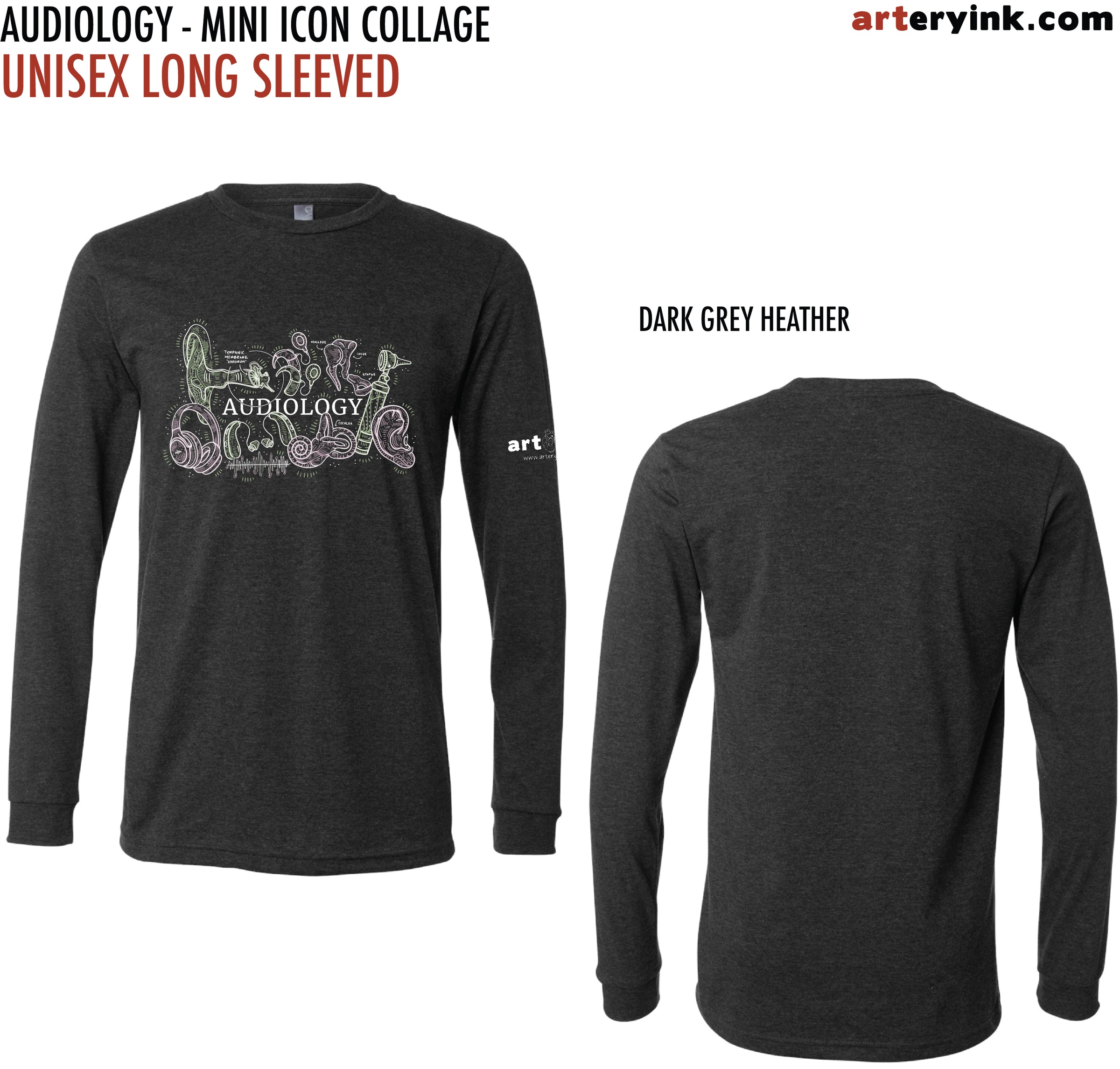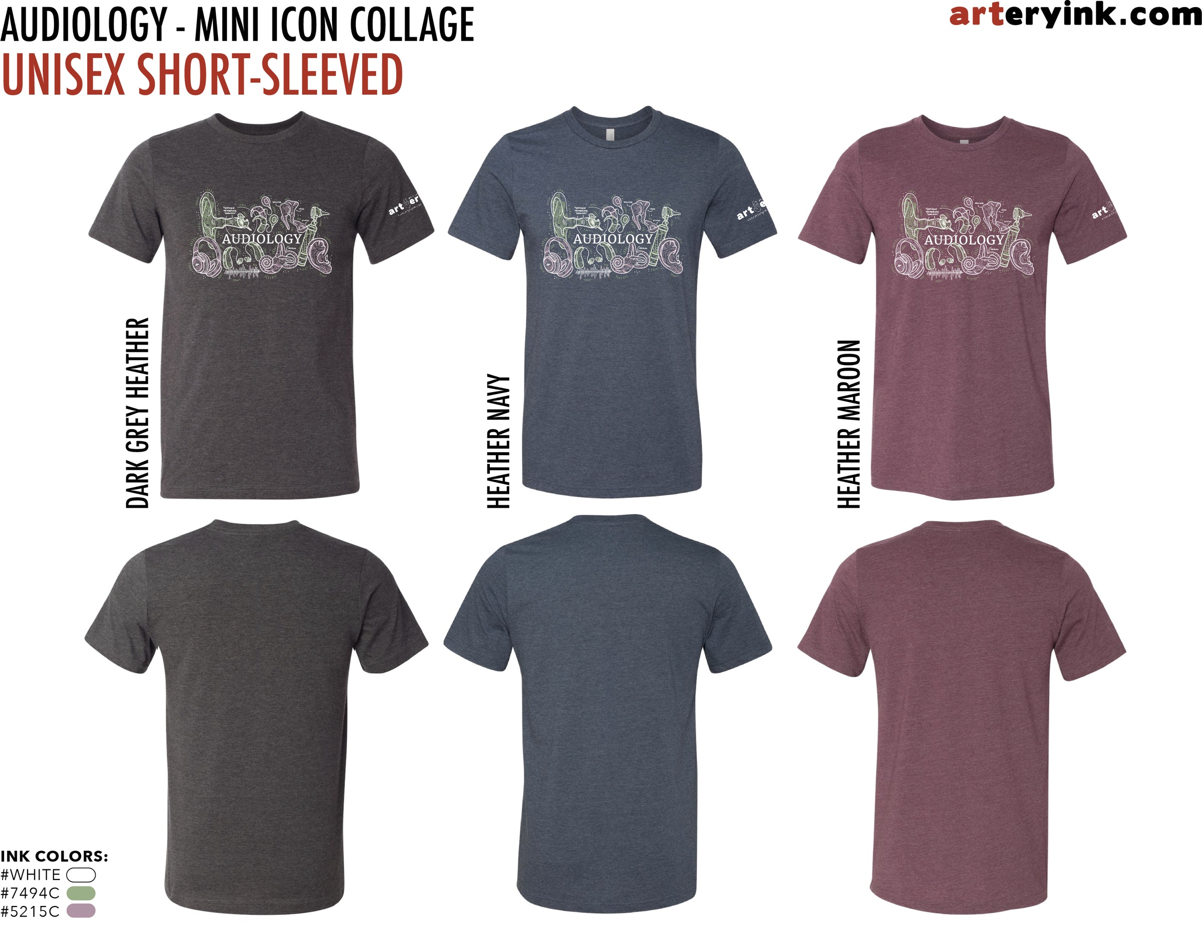 FRONT: "Audiology" Mini Icon Collage (printed in white, light green & light purple)
