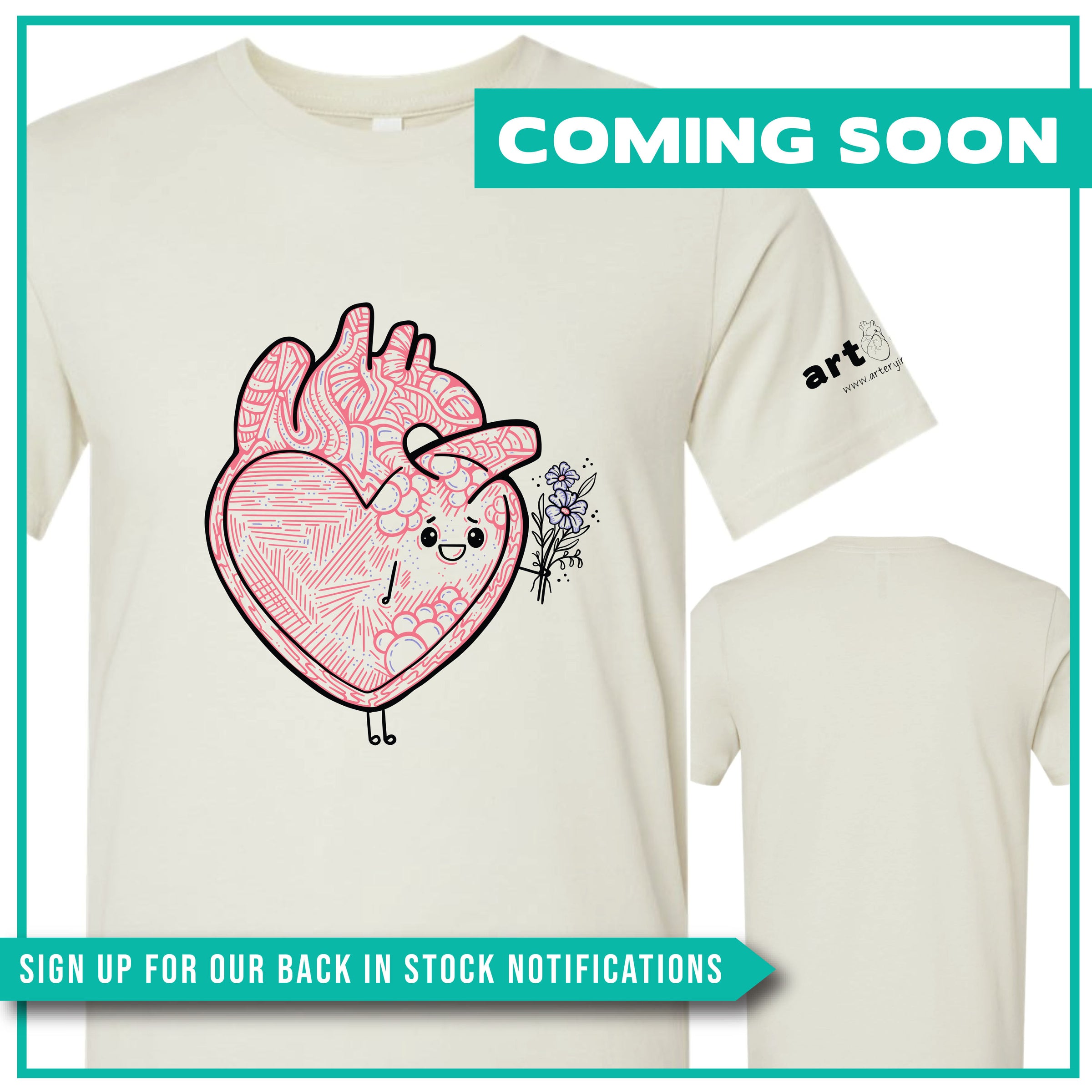 FRONT: Heart holding Flowers (printed in black, pink & purple)