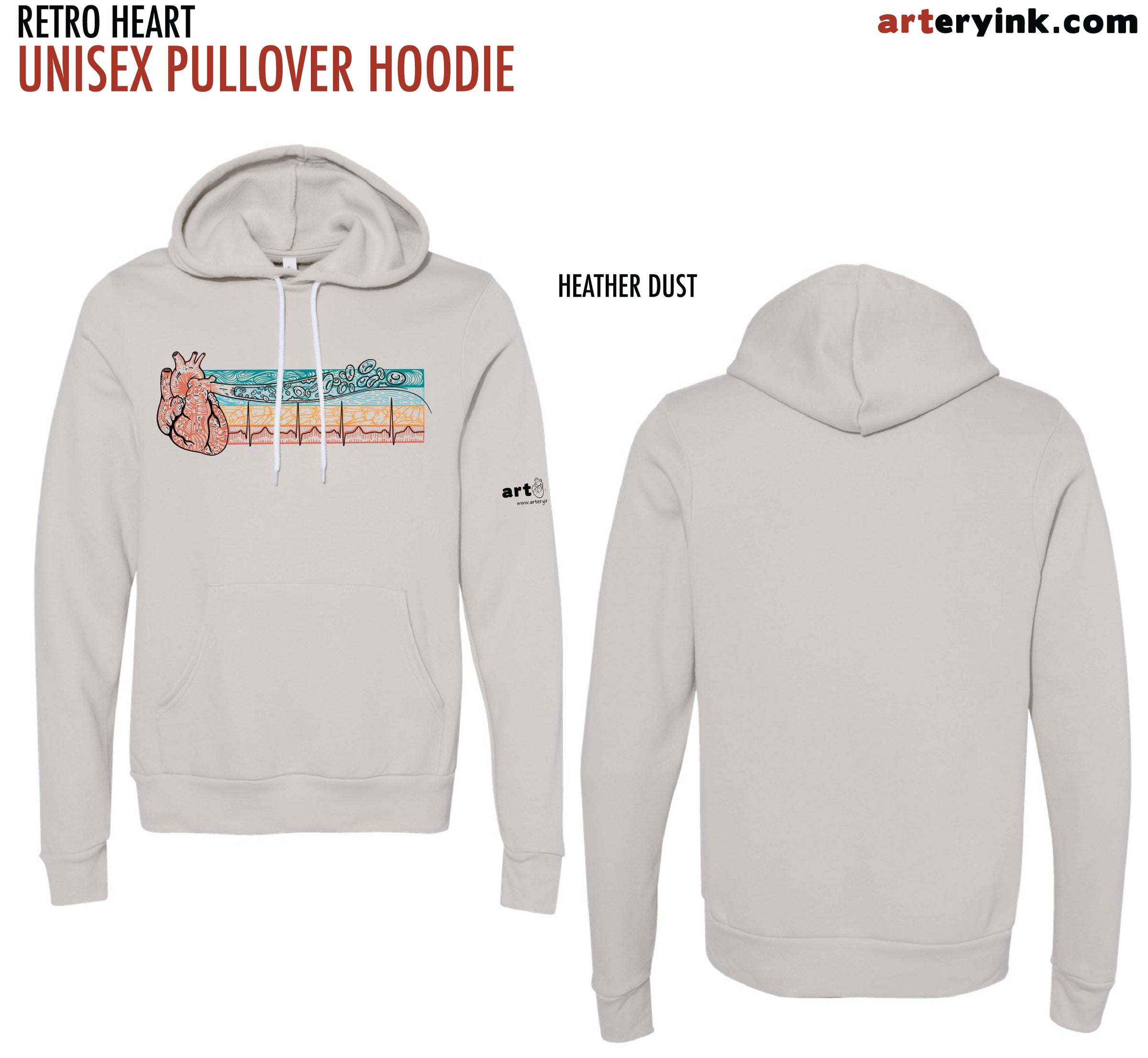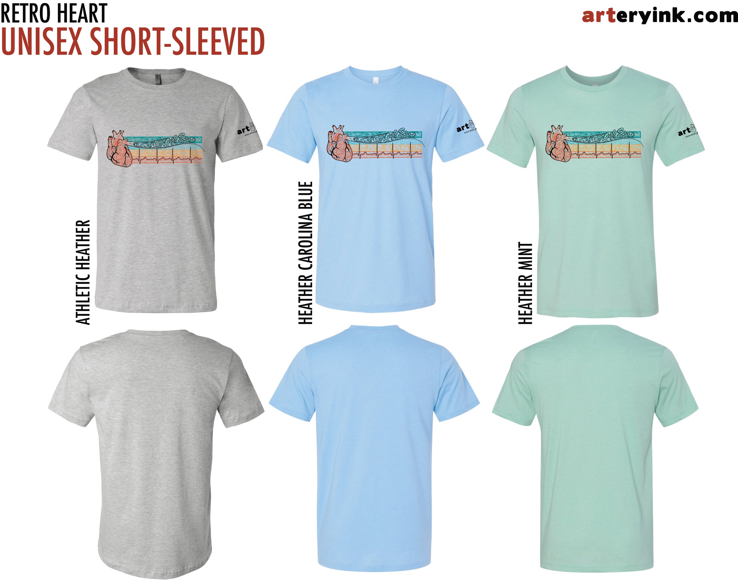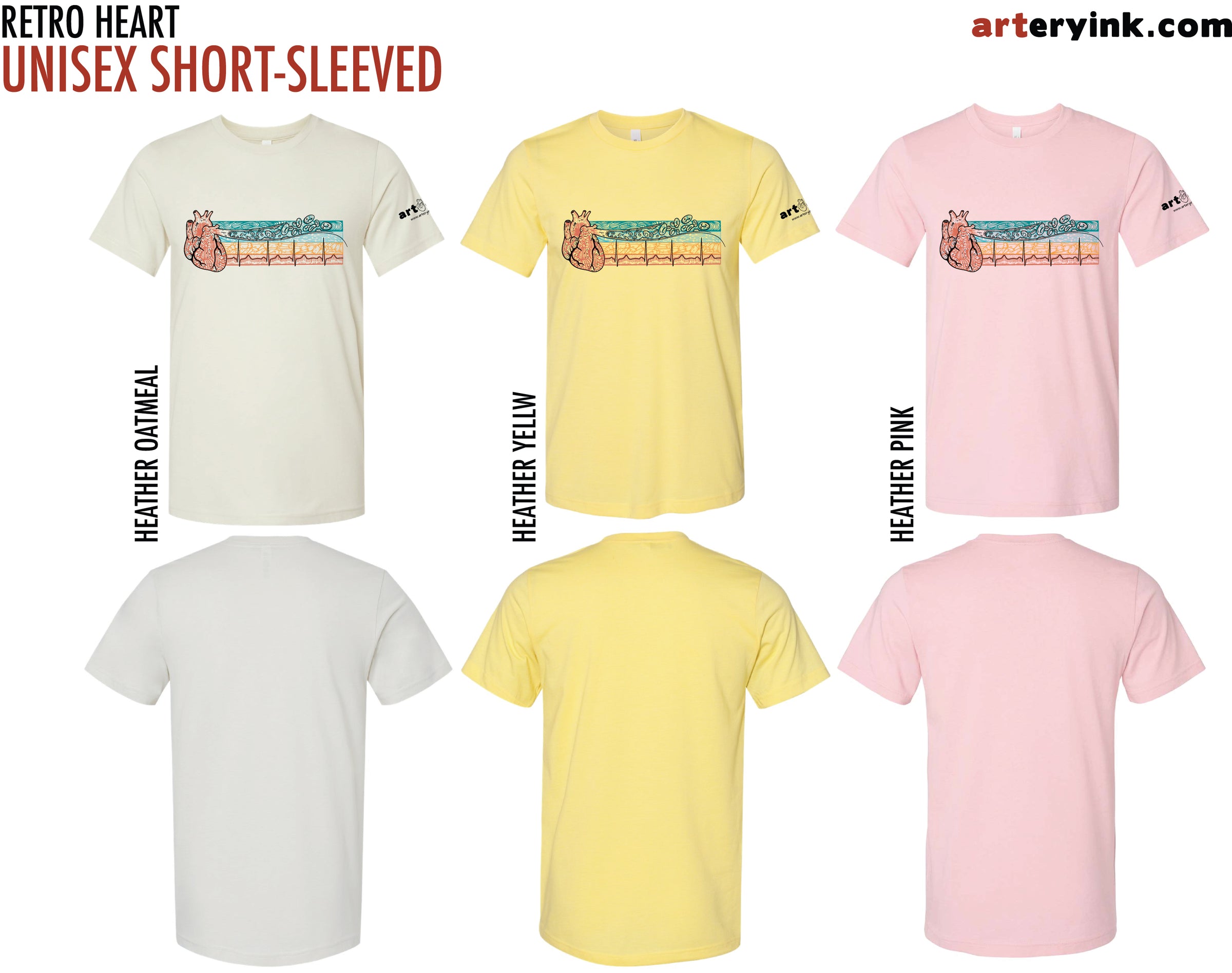 FRONT: Retro Heart ( printed in black, teal, blue, orange & red)