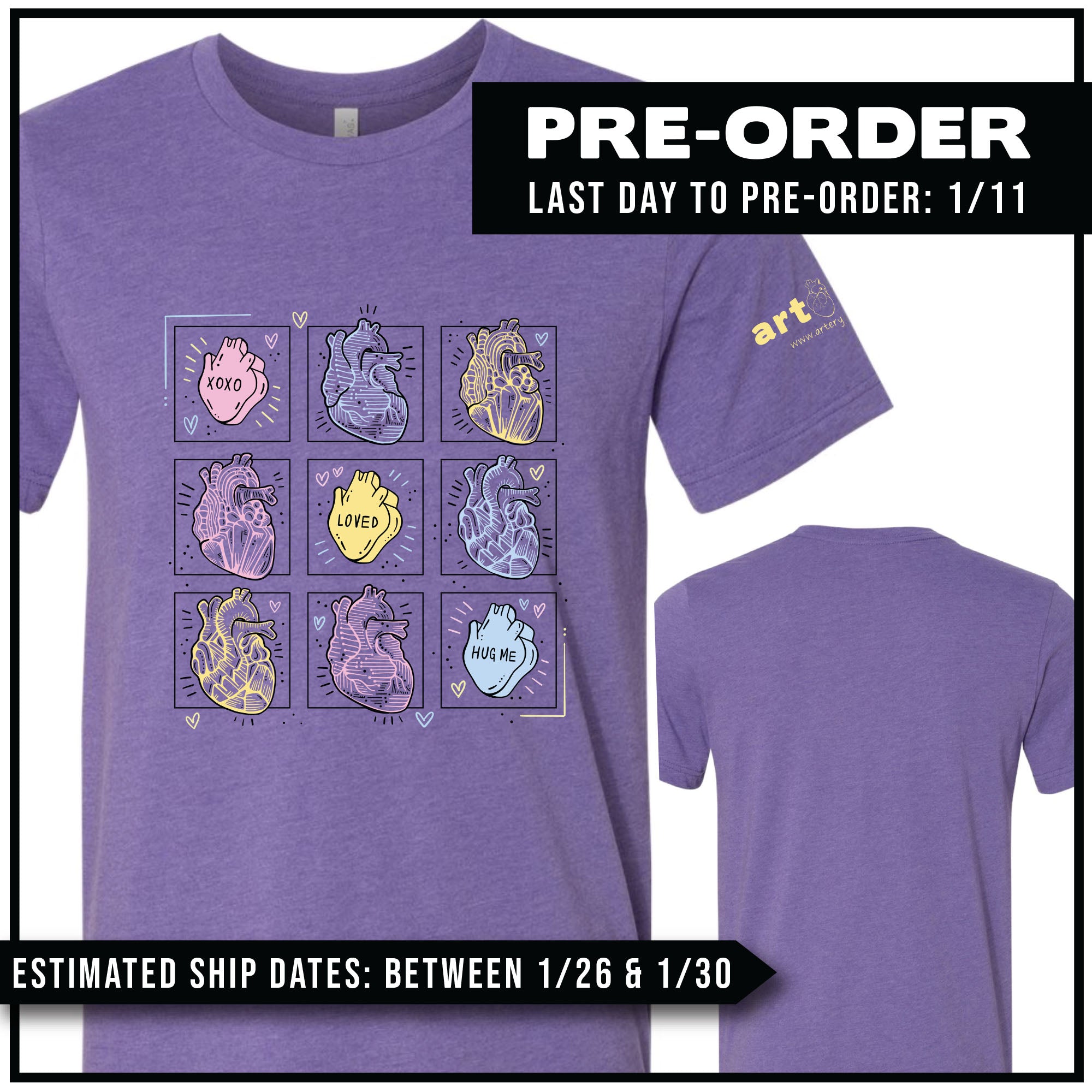 LEFT SLEEVE: Artery Ink Logo (printed in yellow)