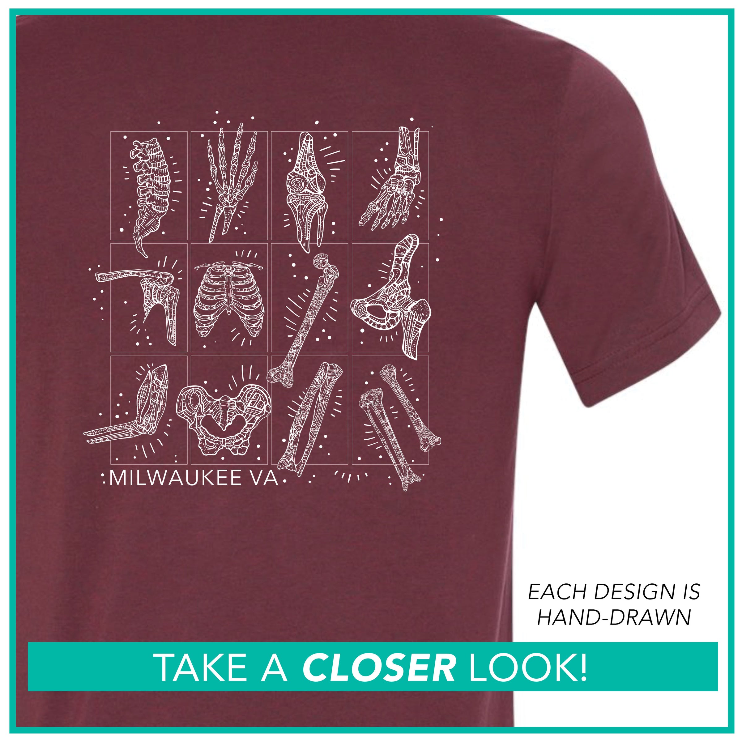BACK: "Milwaukee VA" + Mini Bone Grid Design