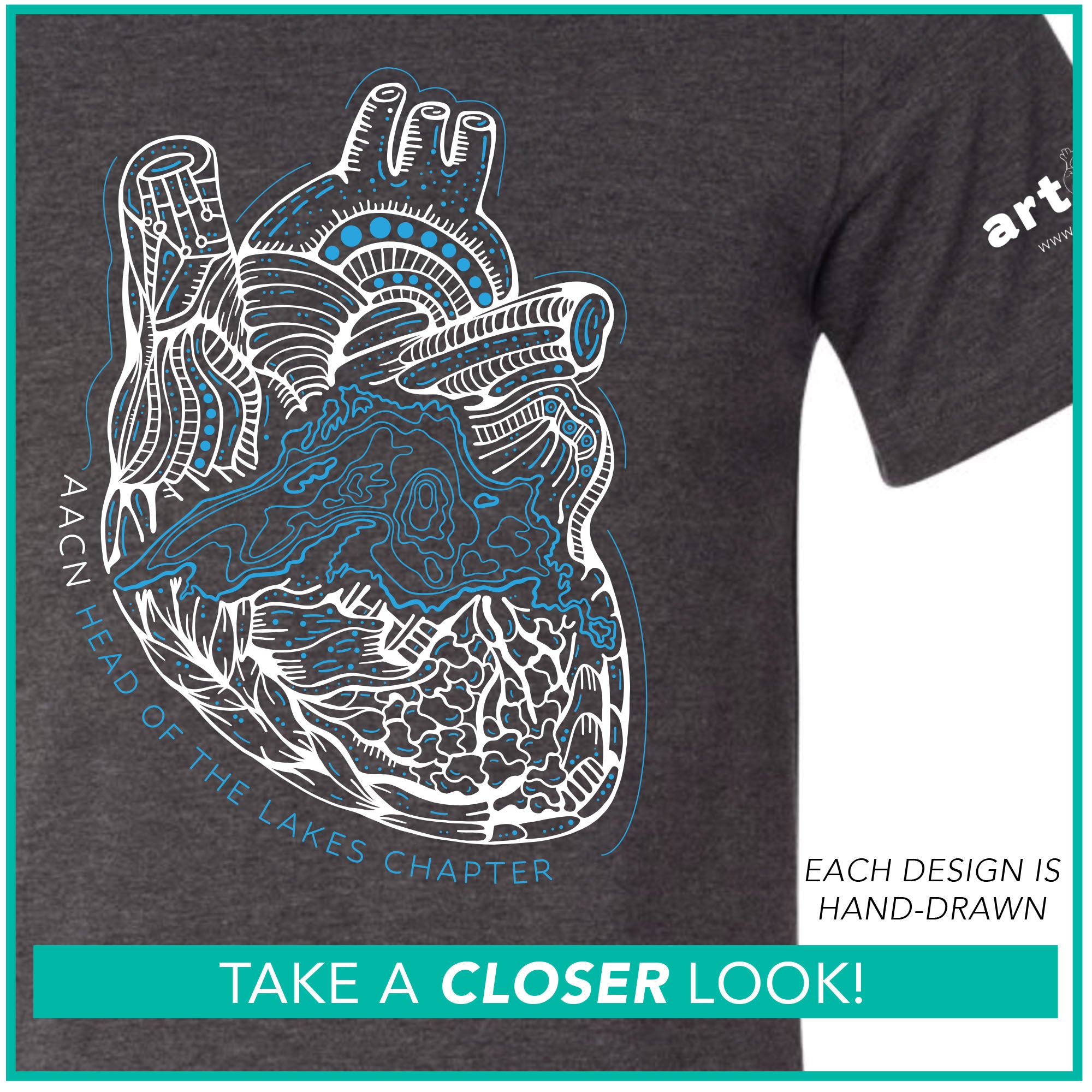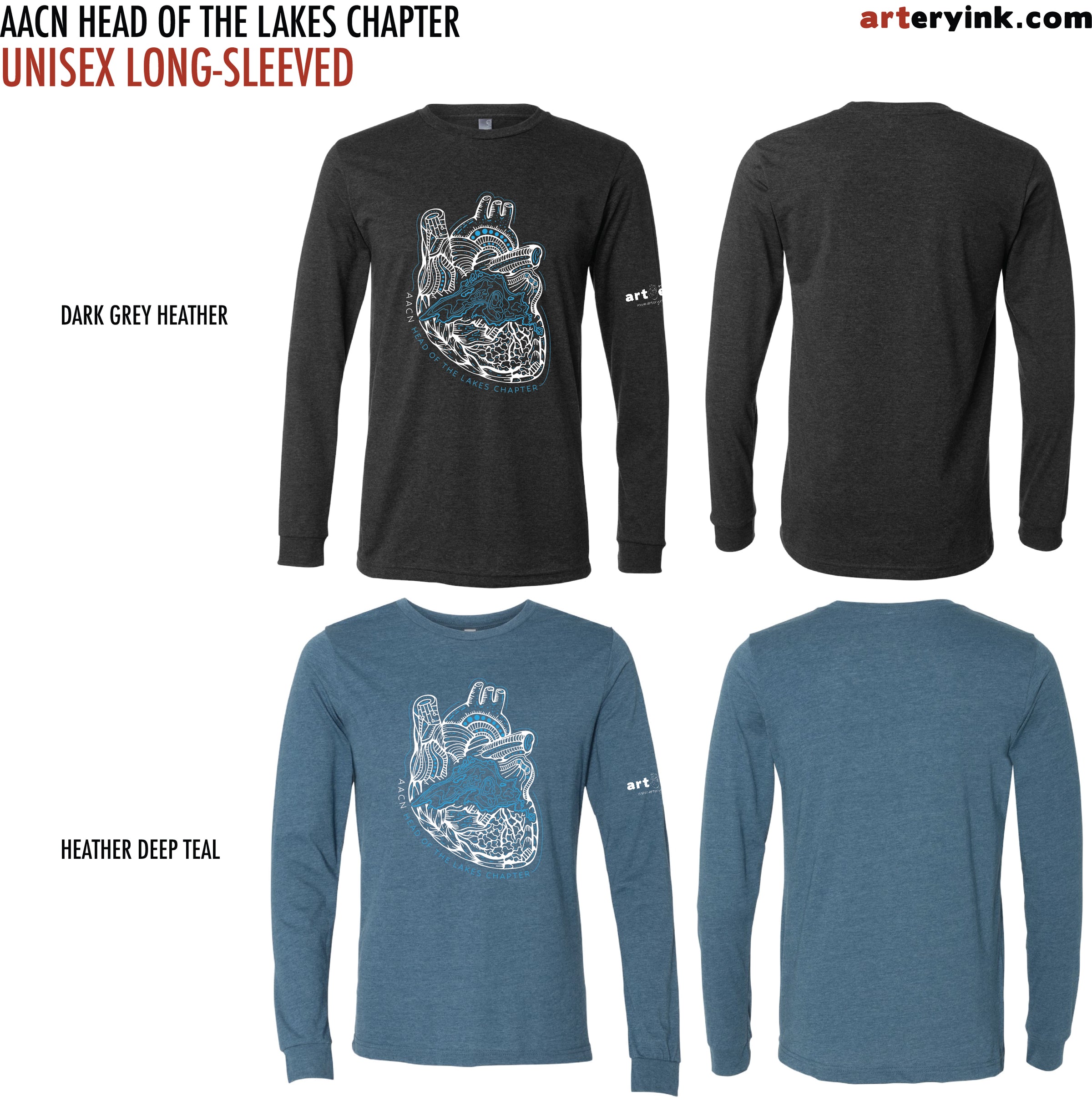 FRONT: Lake Superior Heart + "AACN Head of the Lakes Chapter" (printed in white & blue)