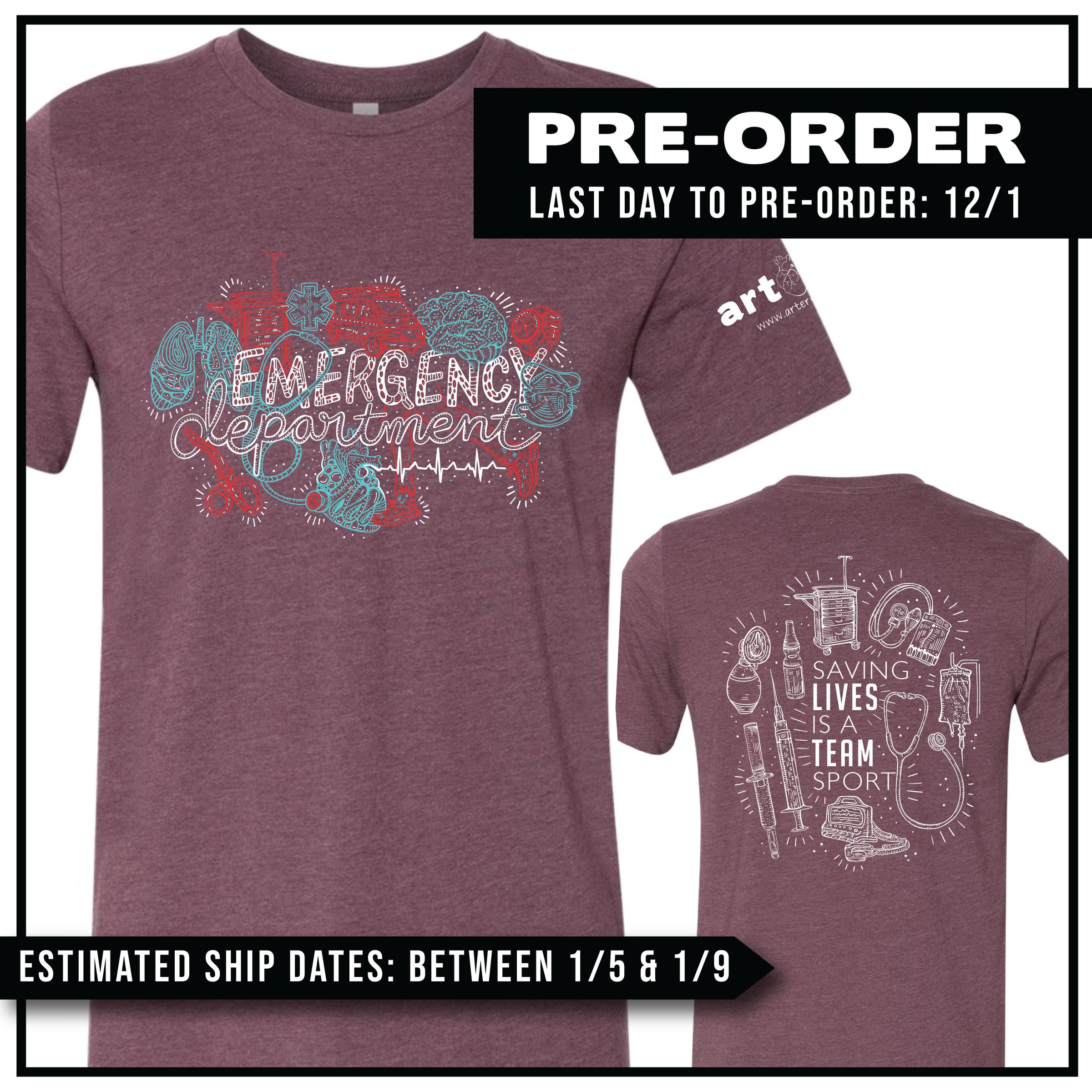 FRONT: "Emergency Department" Word Design (printed in white, teal & red)
