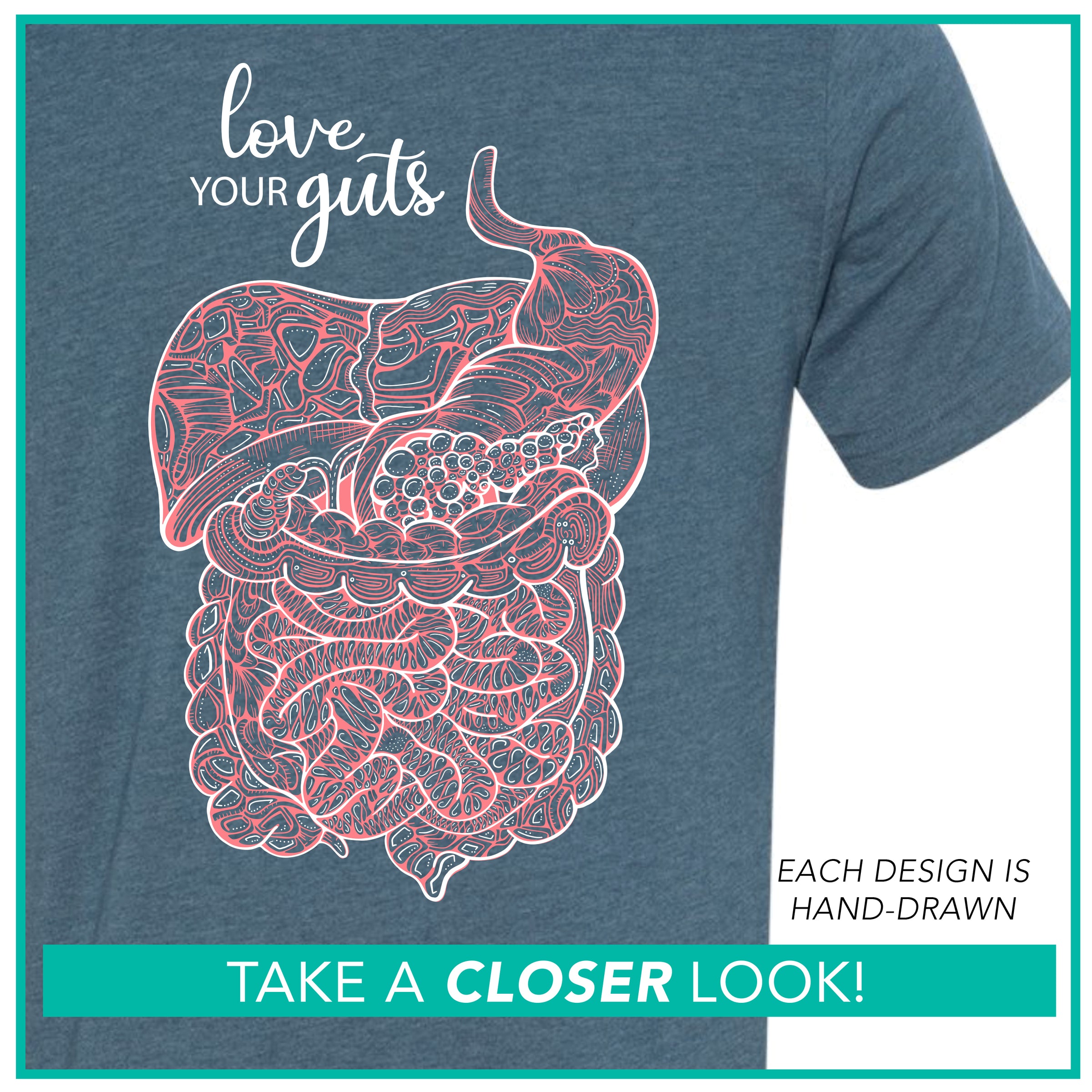 "Love your Guts" + Digestive System Design (printed in white & coral)