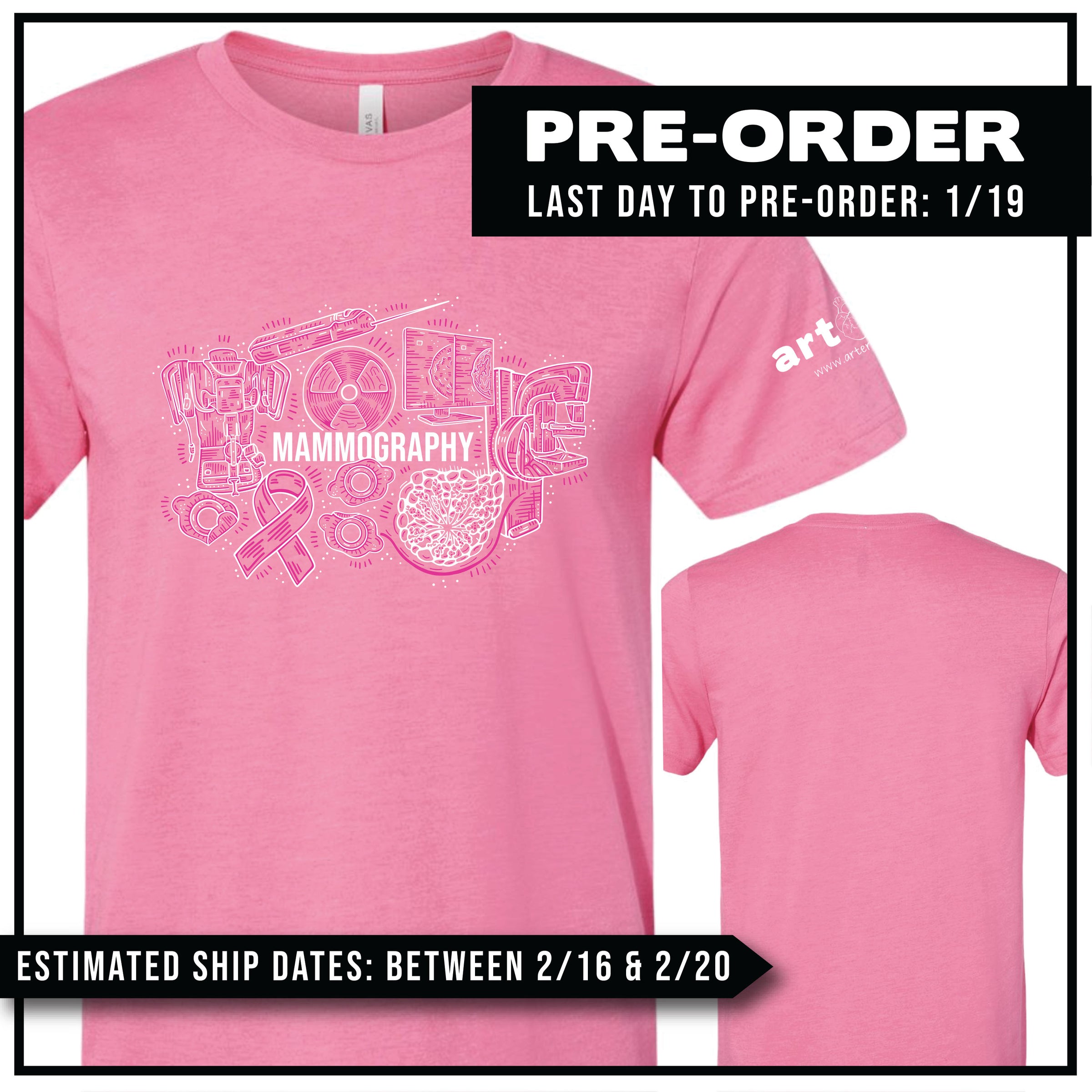 FRONT: "Mammography" Mini Icons Collage Design (printed in white & pink)