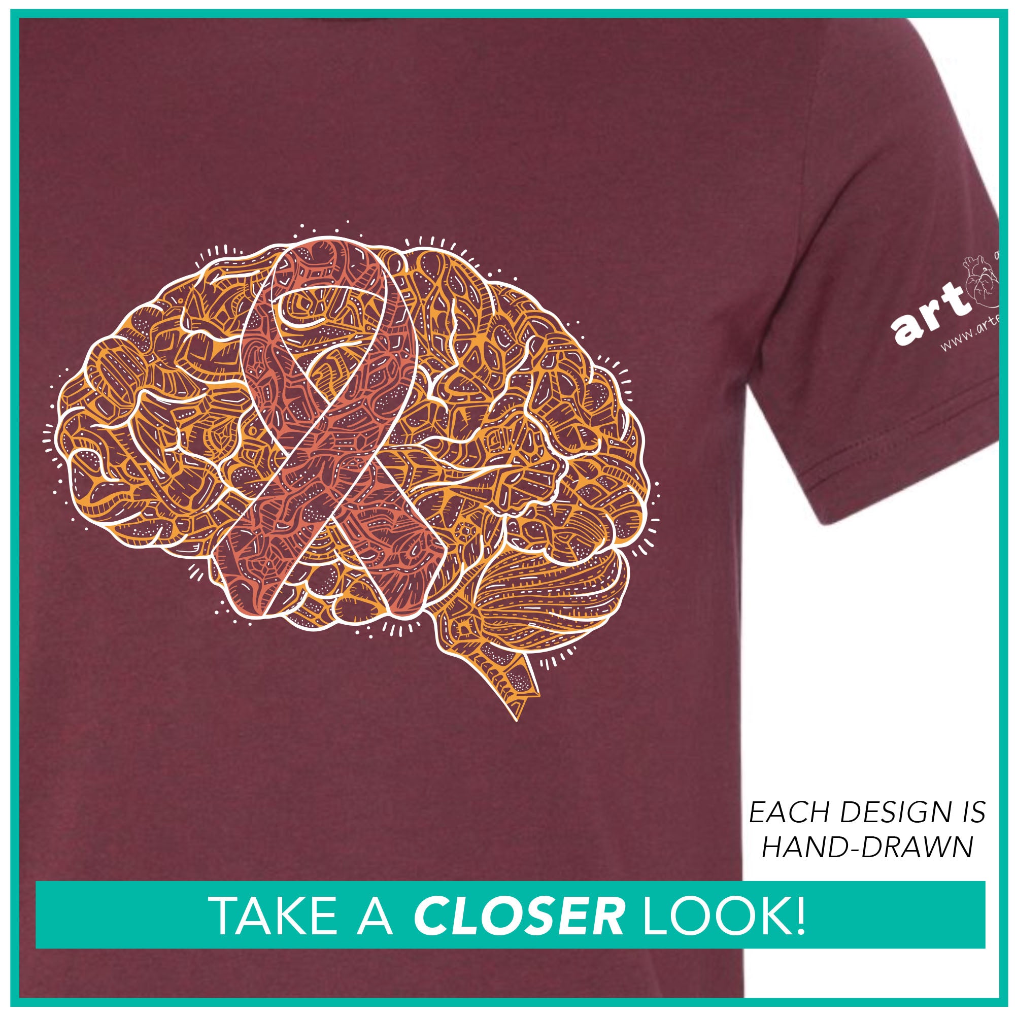 FRONT: Ribbon Brain (printed in white, orange)