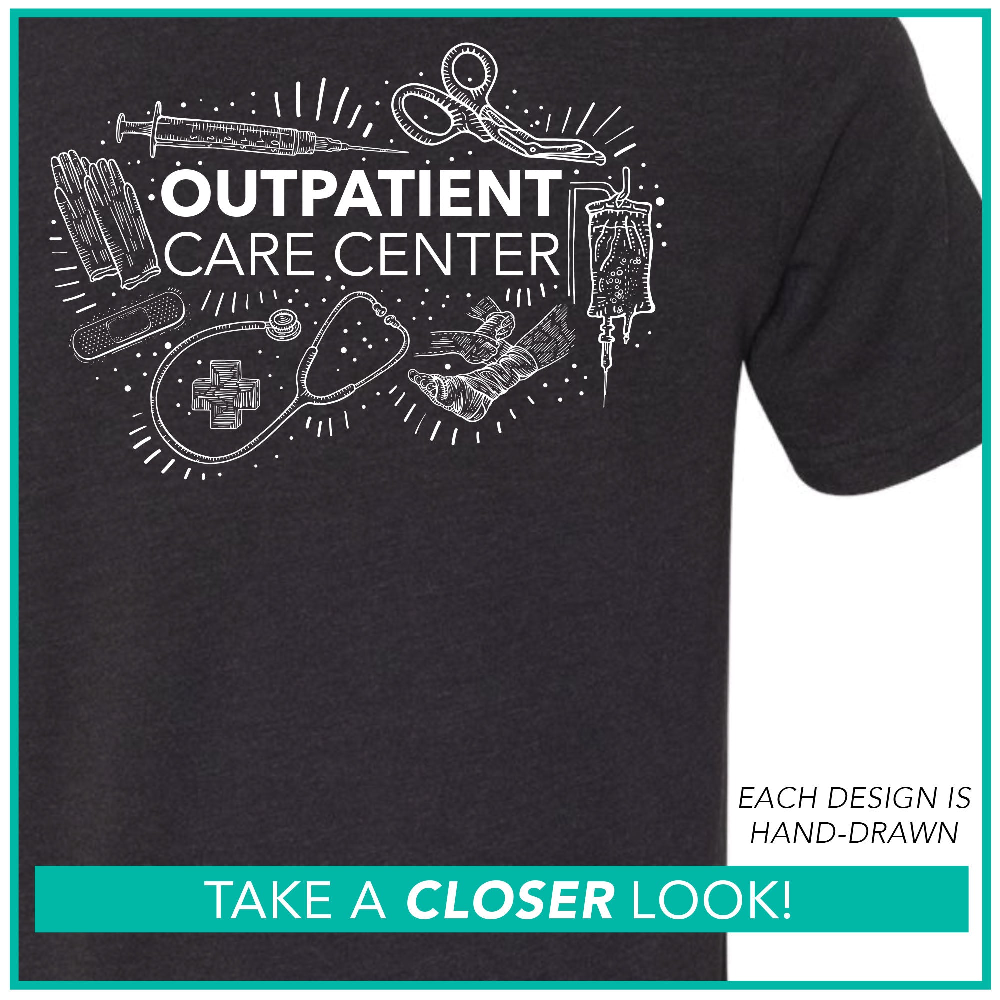 FRONT LEFT CHEST: "Outpatient Care Center"