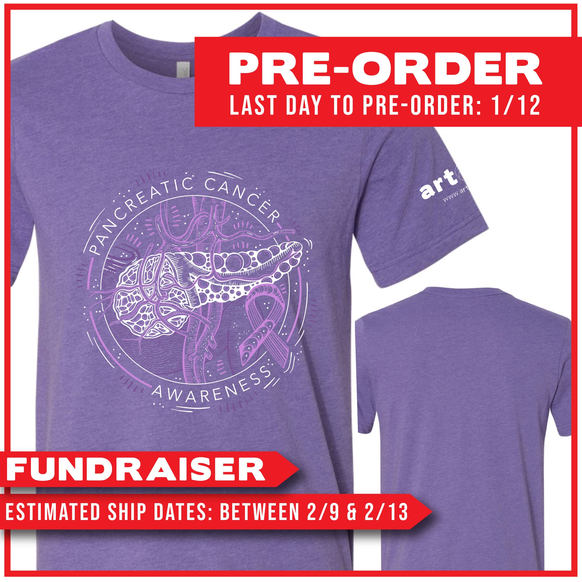 FRONT: "Pancreatic Cancer Awareness" Design (printed in white, light purple & dark purple)