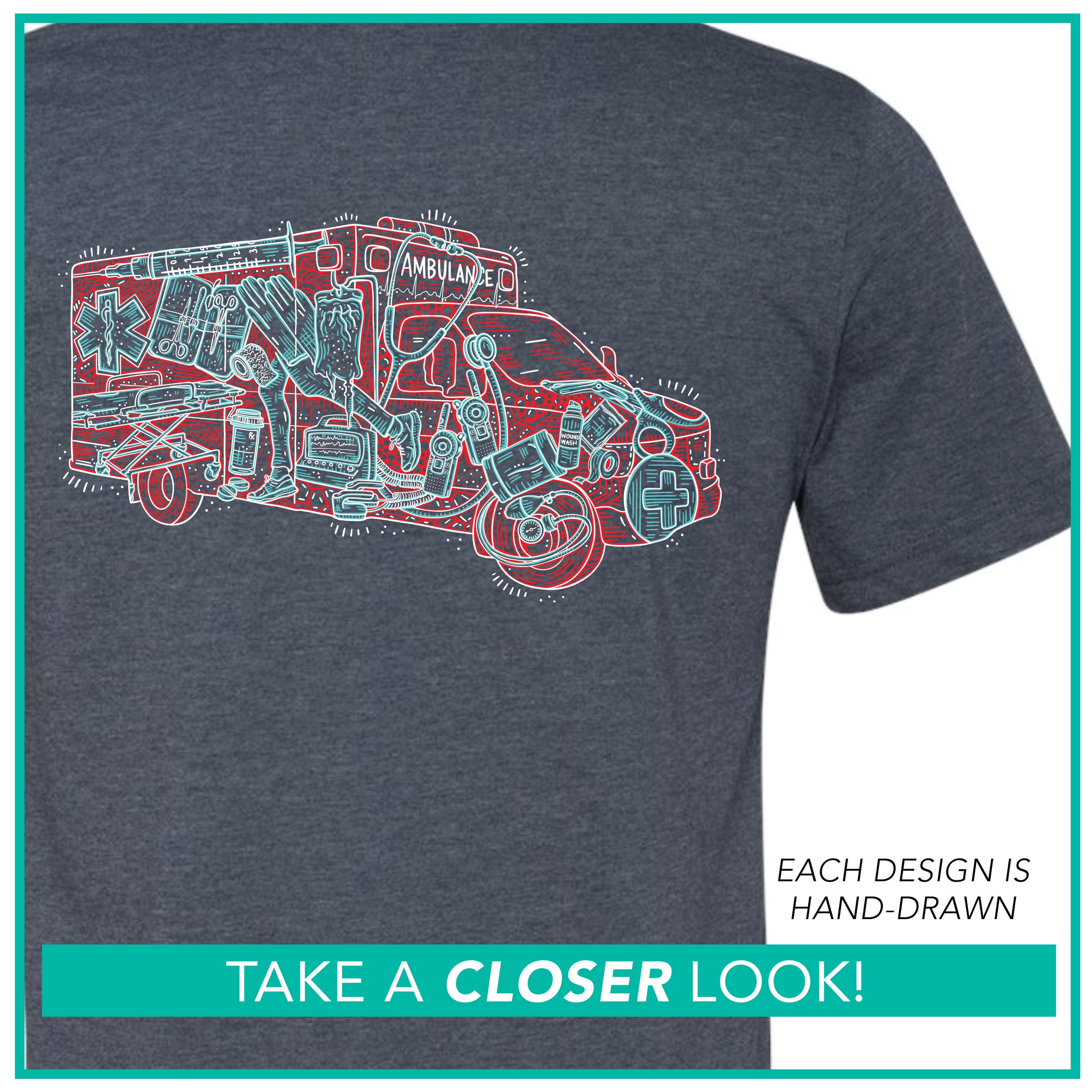BACK: Ambulance with Healthcare Icons (printed in white, red & teal)
