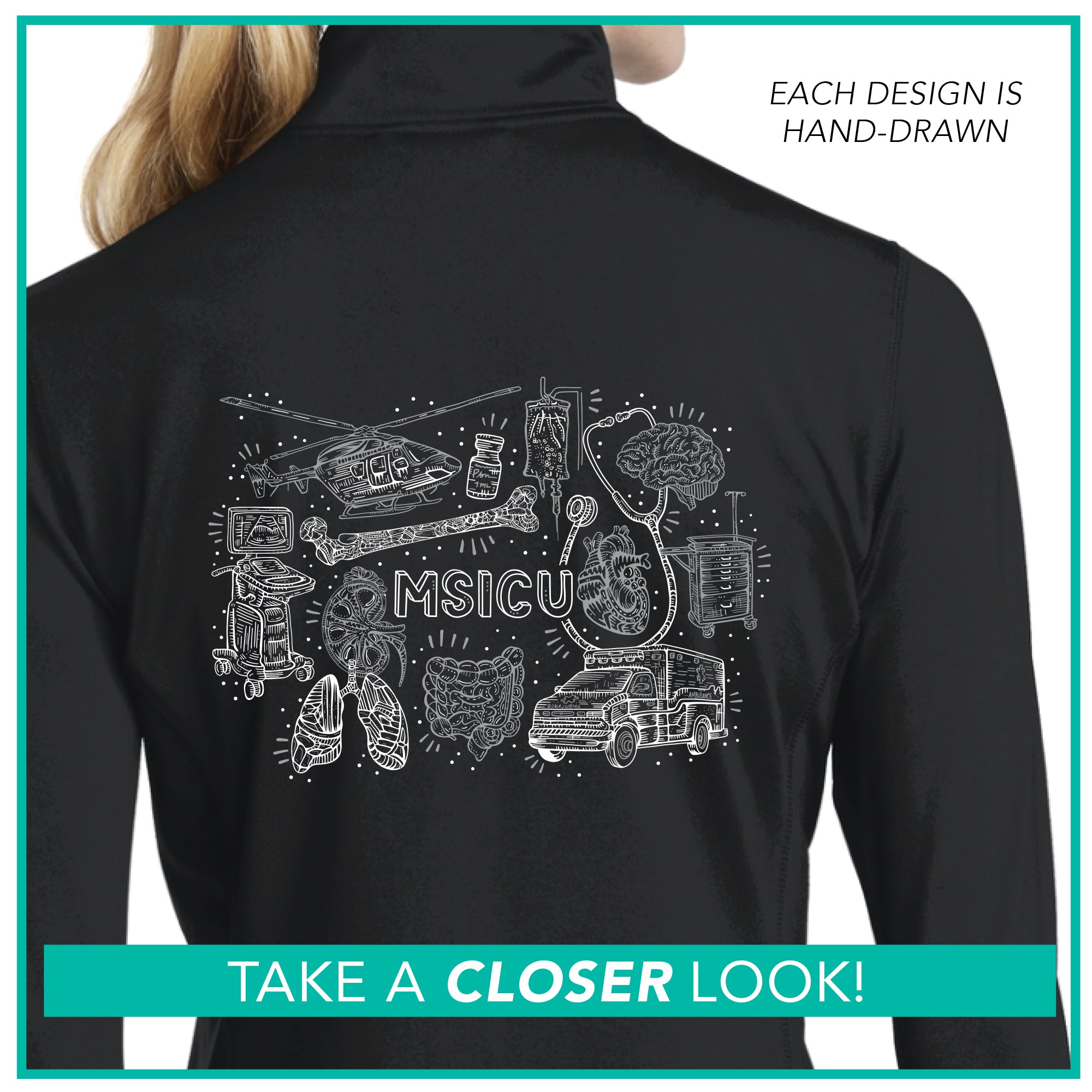 BACK: "MSICU" Mini Icons Collage Design (printed in white & grey)