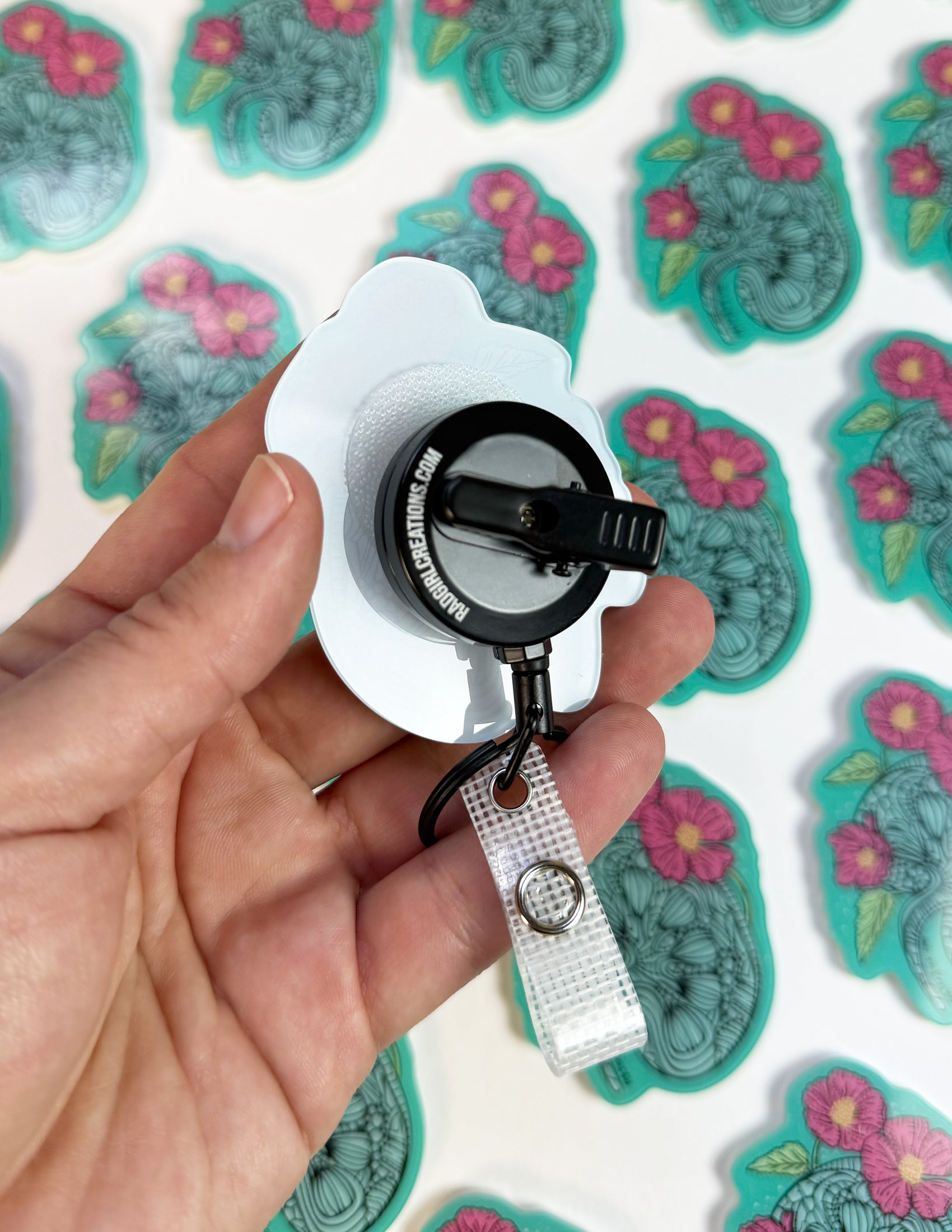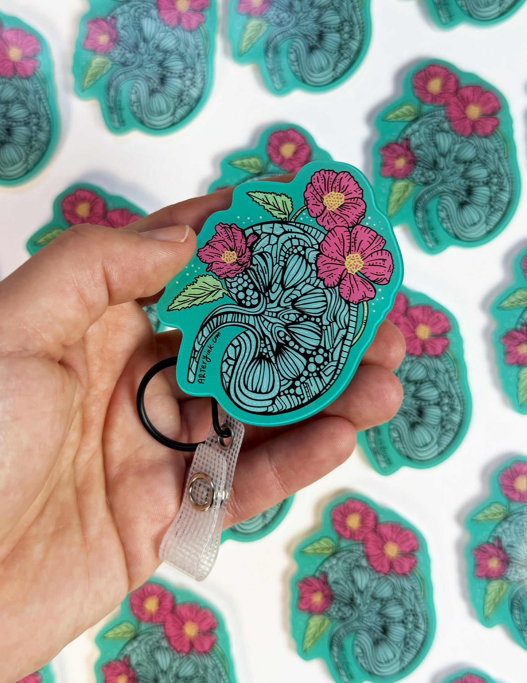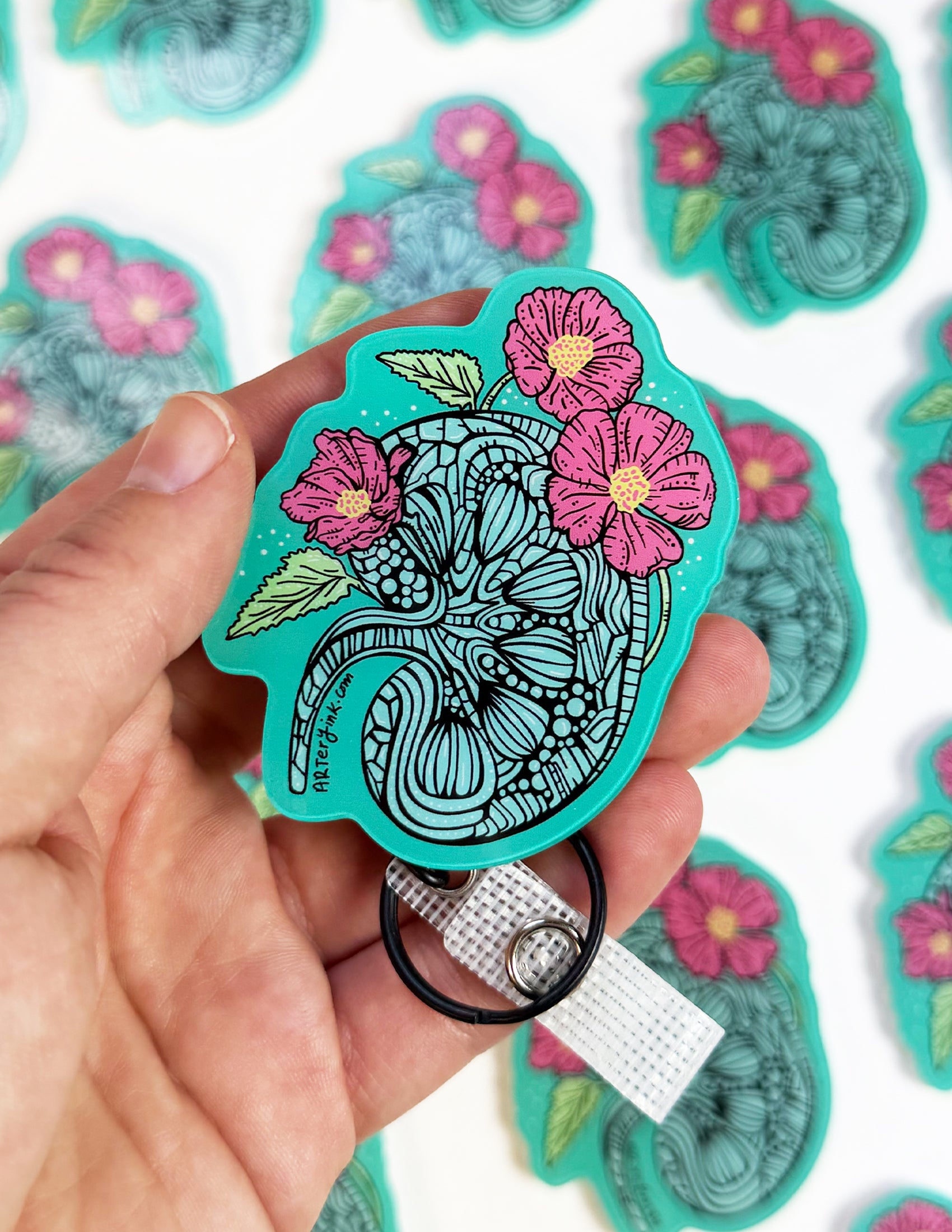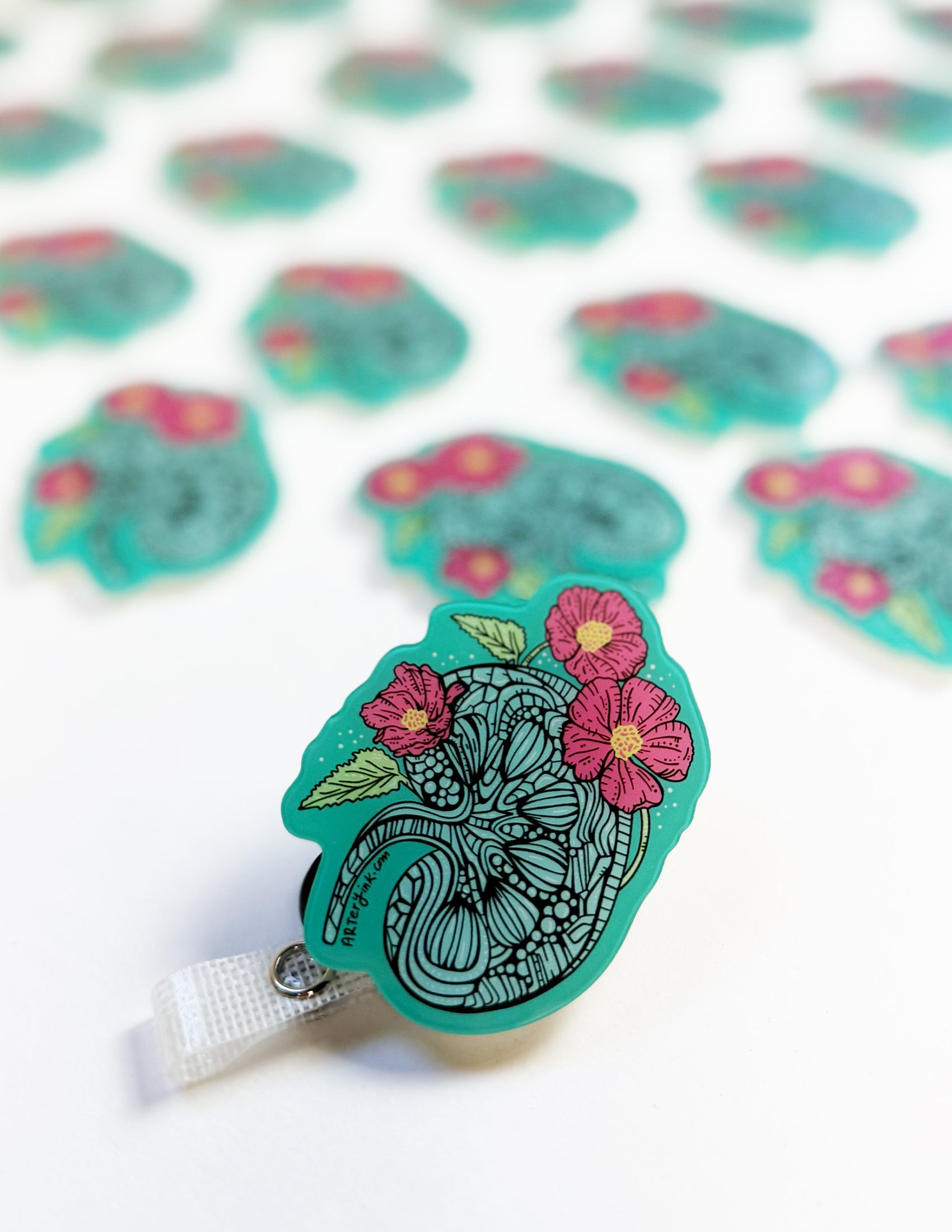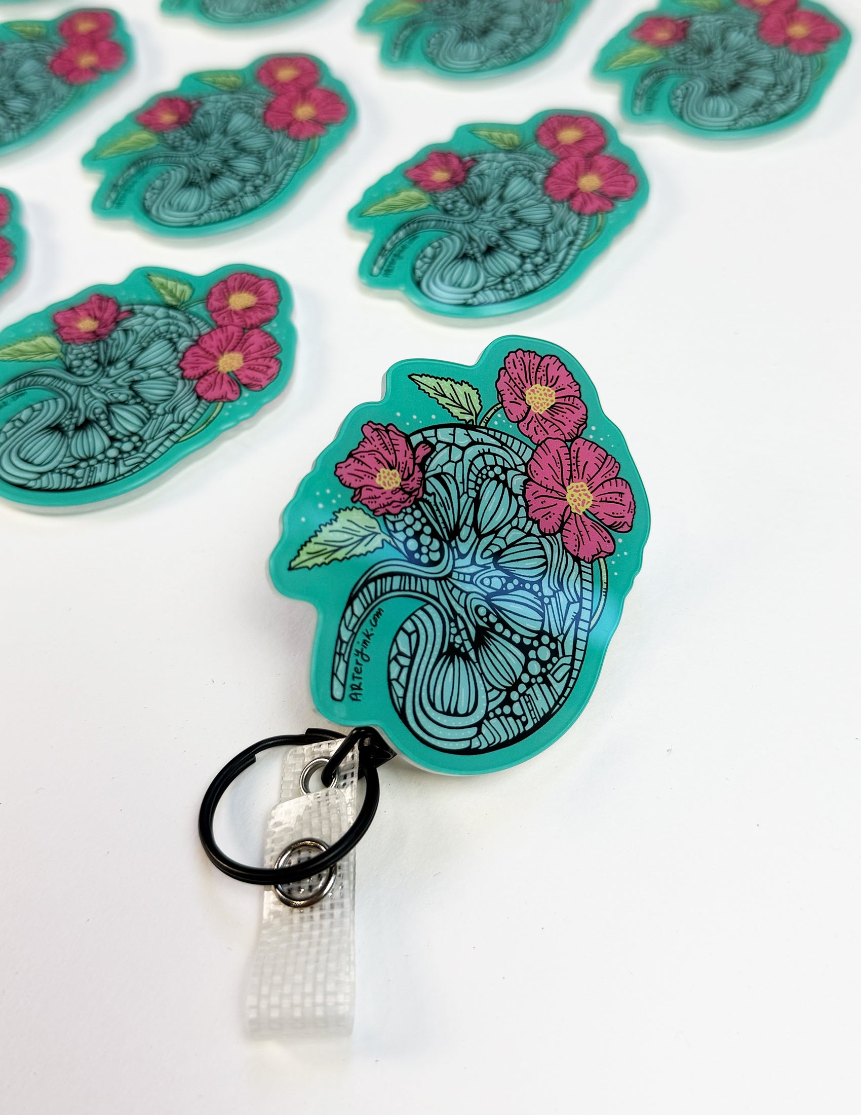These super fun swappable badge reel designs are an epic addition to your work attire! These ultra-cleanable designs are backed with heavy-duty 3M Dual-Lock and works with all Rad Girl Creations swappable badge reels! More Artery Ink designs coming soon!