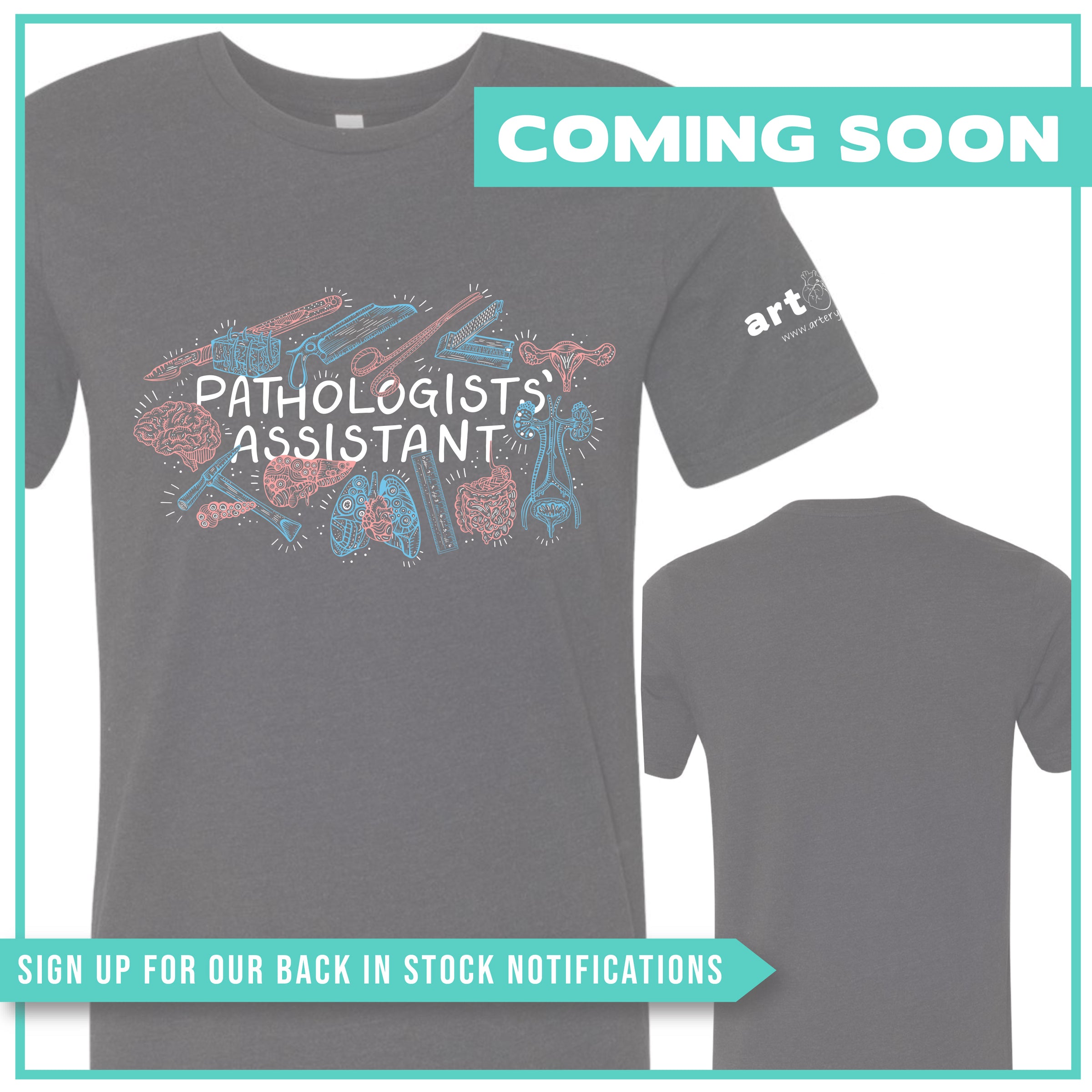 BACK: "Pathologists' Assistant" Word Design (printed in white, blue & coral)