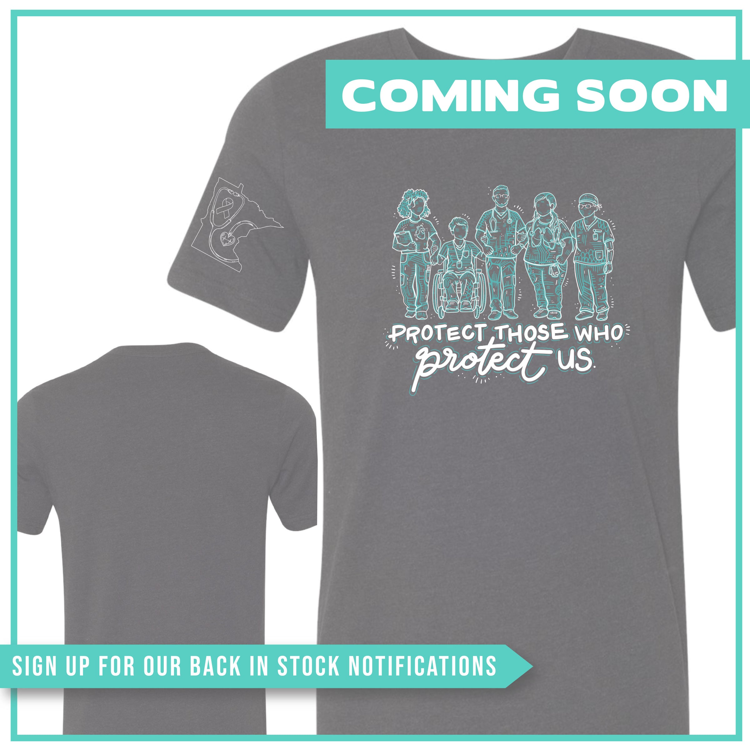 FRONT: Healthcare Workers Design + "Protect Those Who Protect Us" (printed in white & teal)