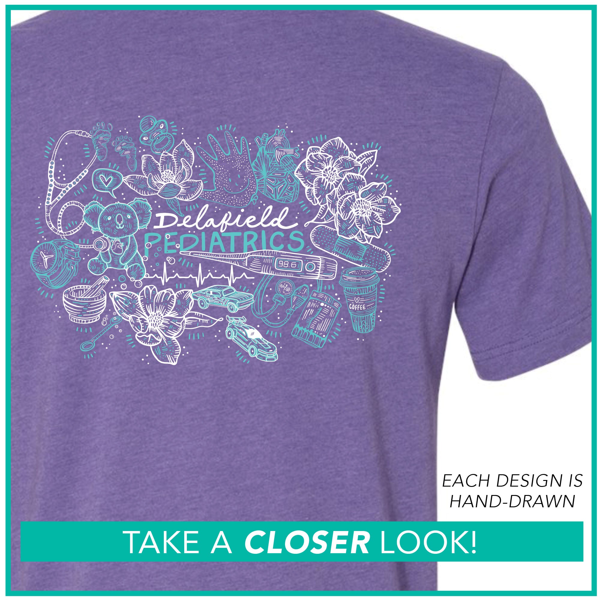BACK: "Delafield Pediatrics" Mini Icon Collage (printed in white & light teal)