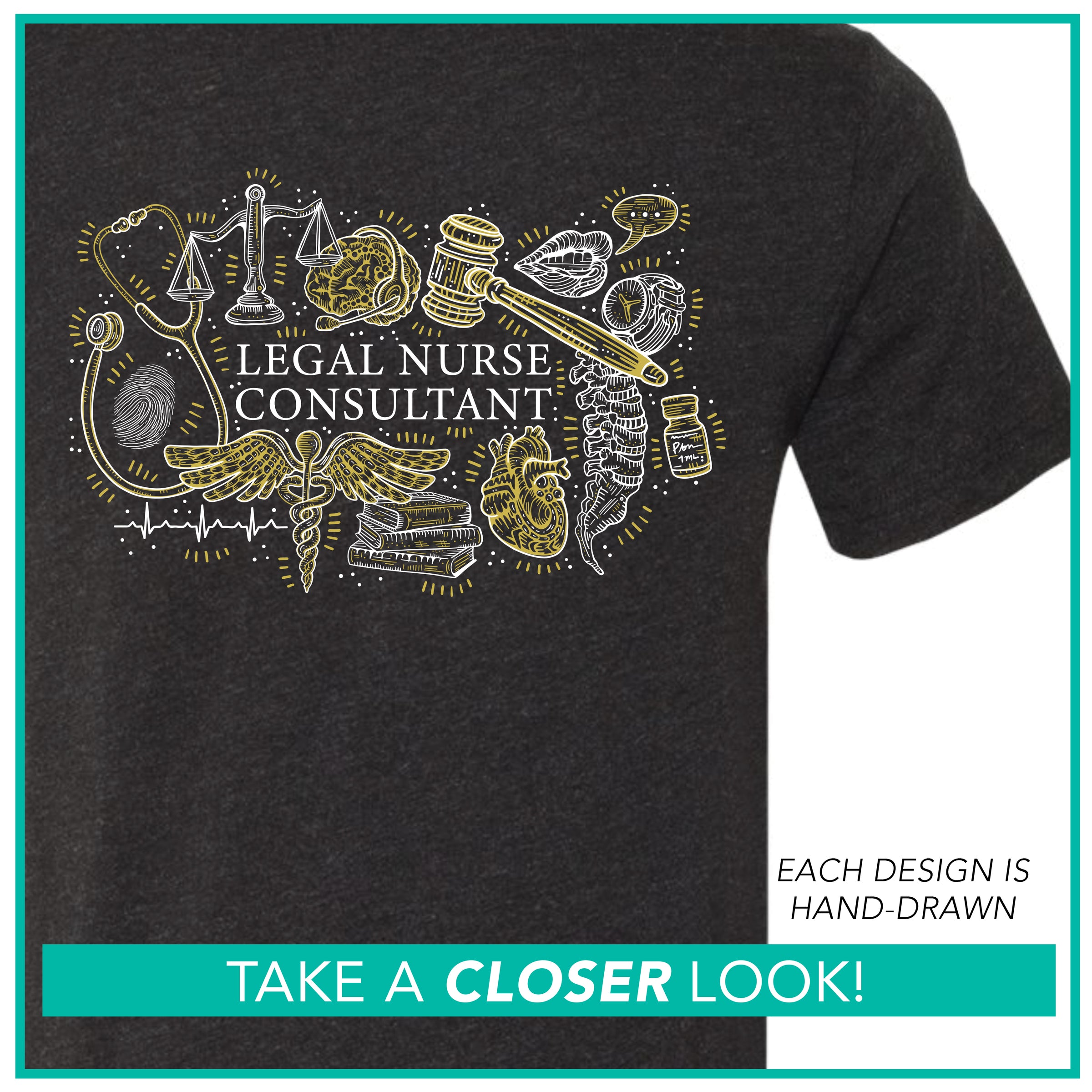 BACK: "Legal Nurse Consultant" Mini Icons Collage (printed in white & mustard gold)