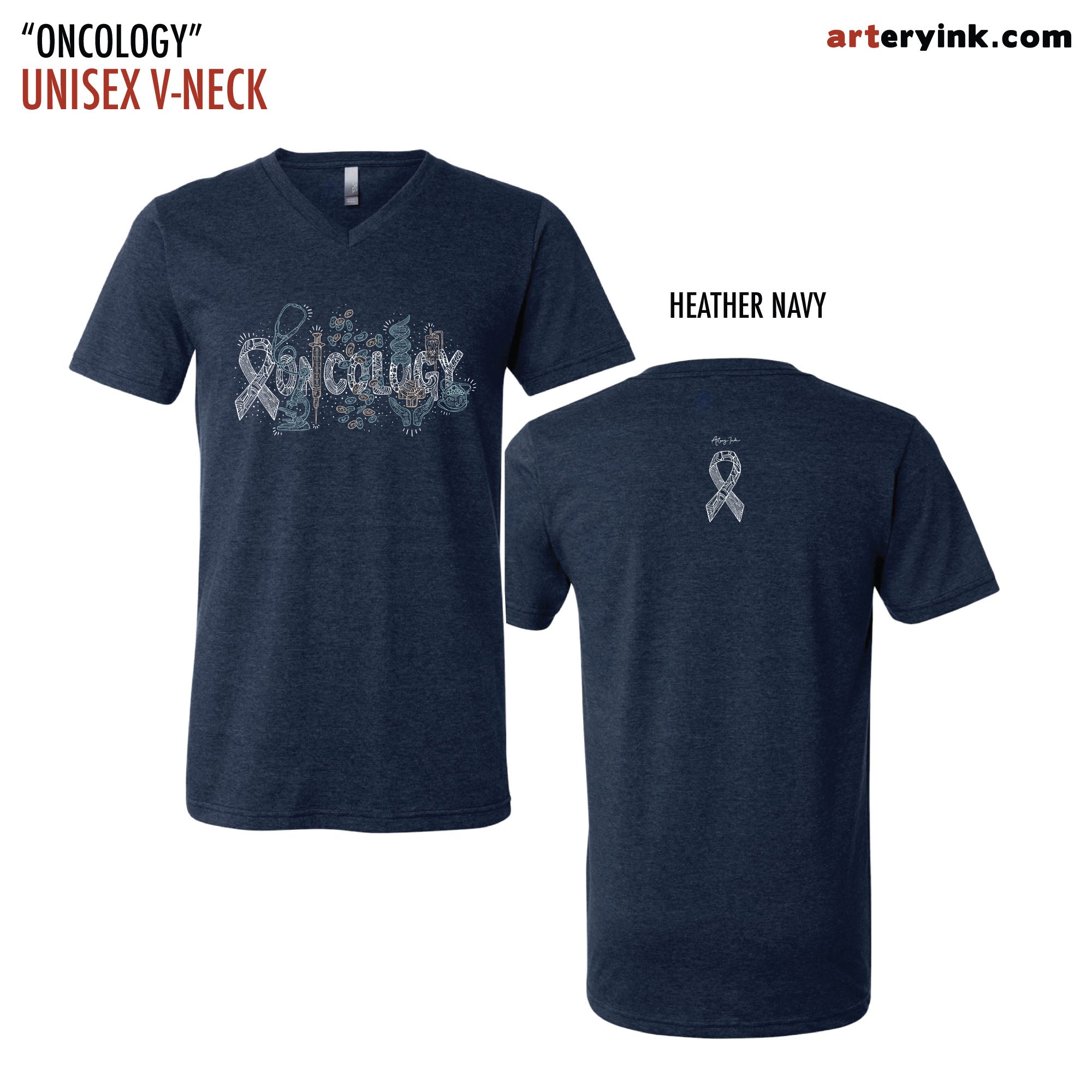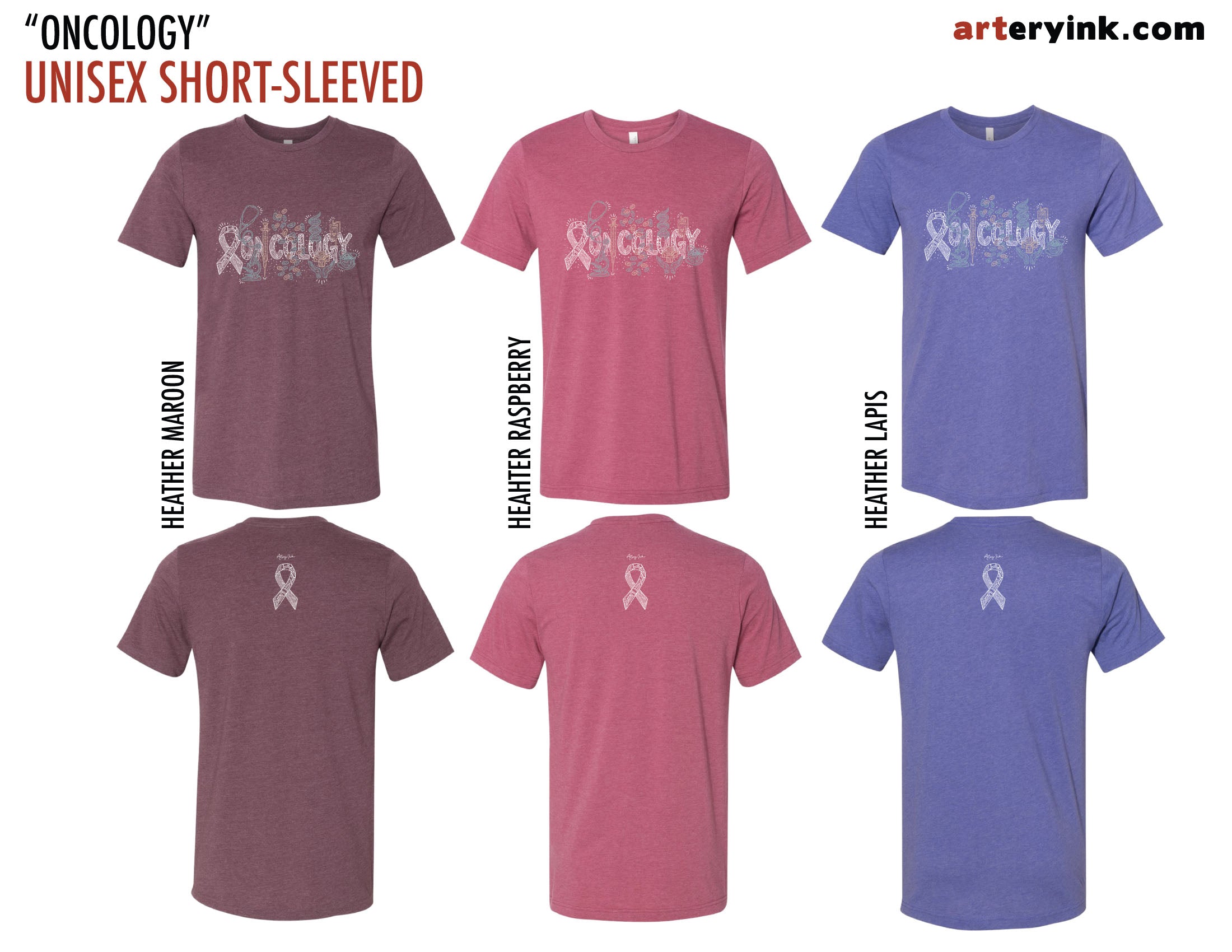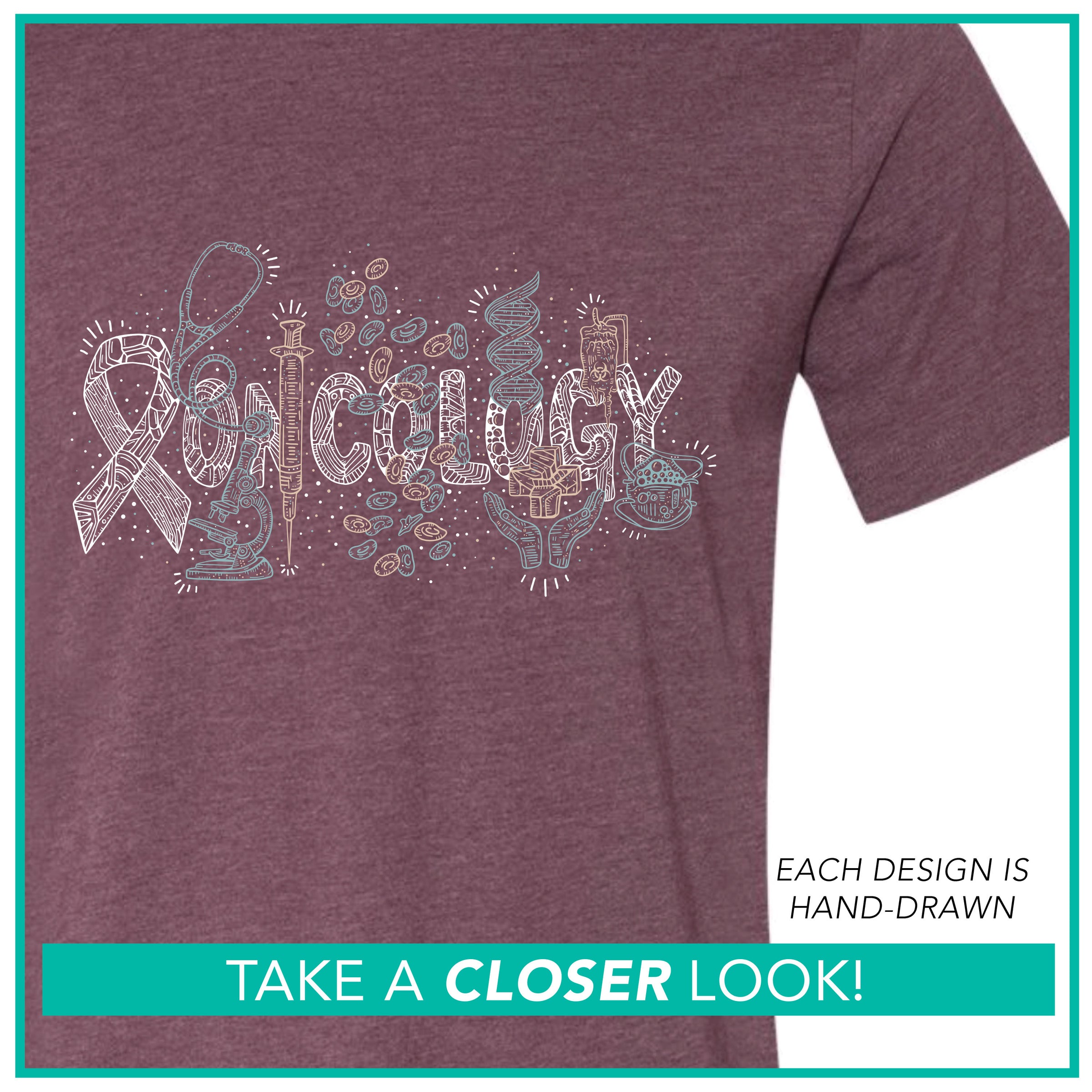 FRONT: "Oncology" Word Design (printed in white, light blue & peach)