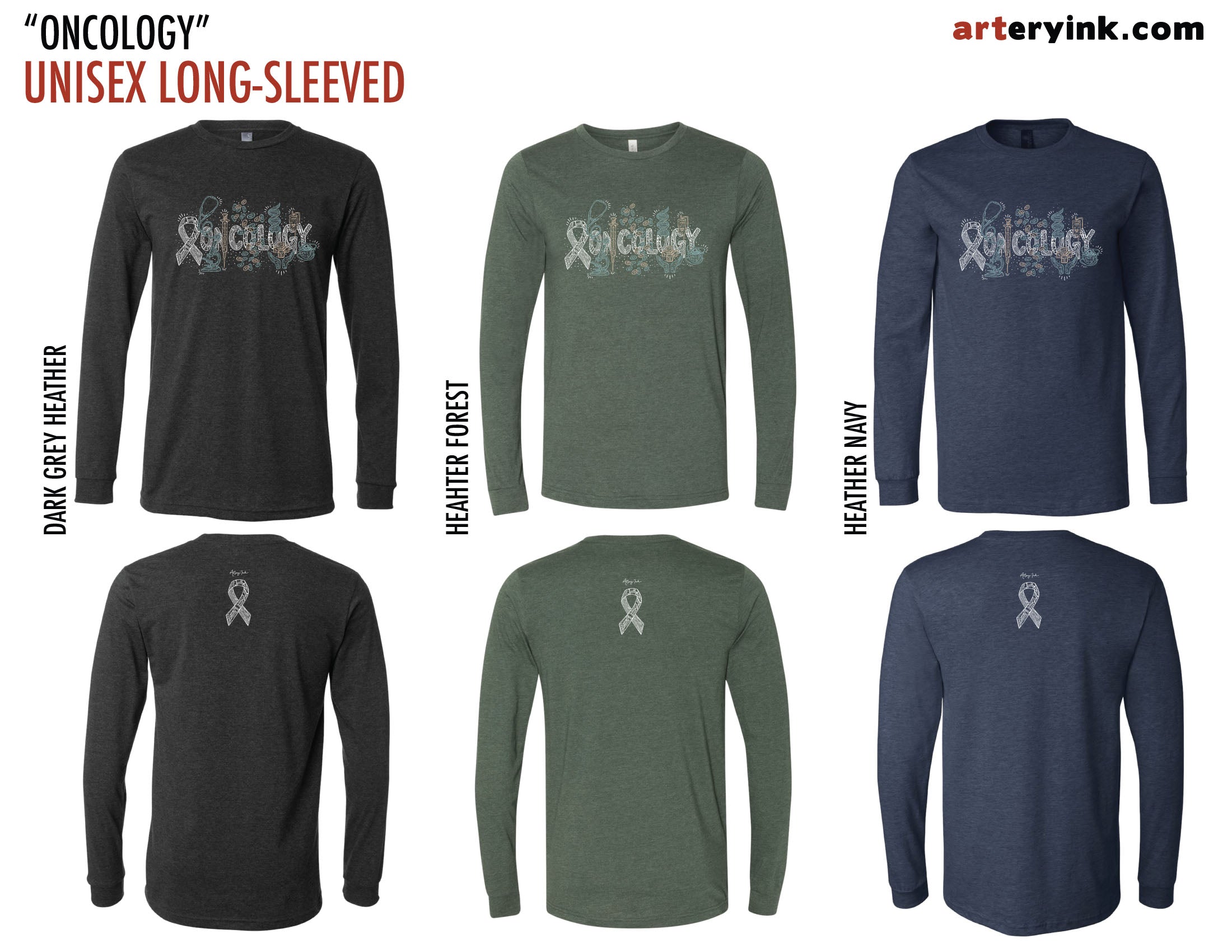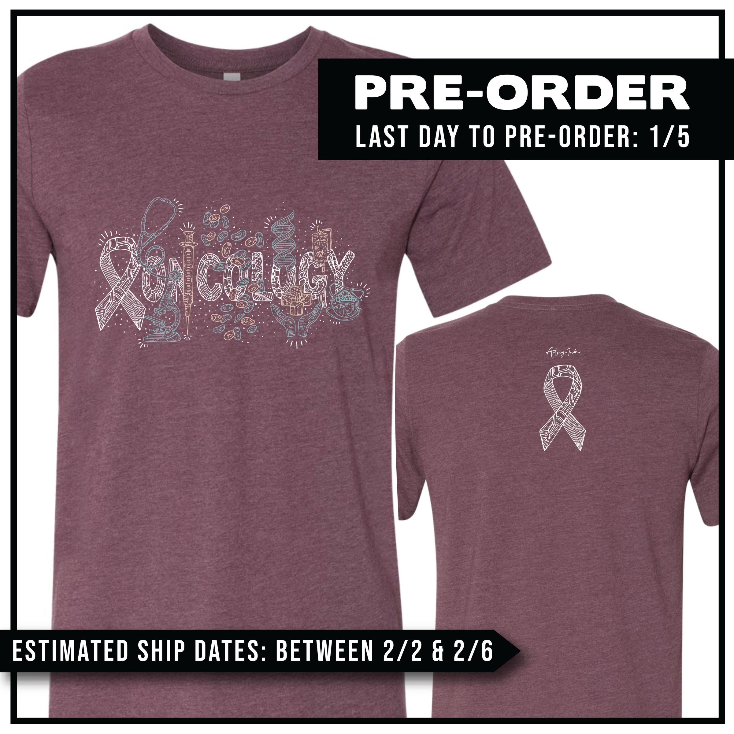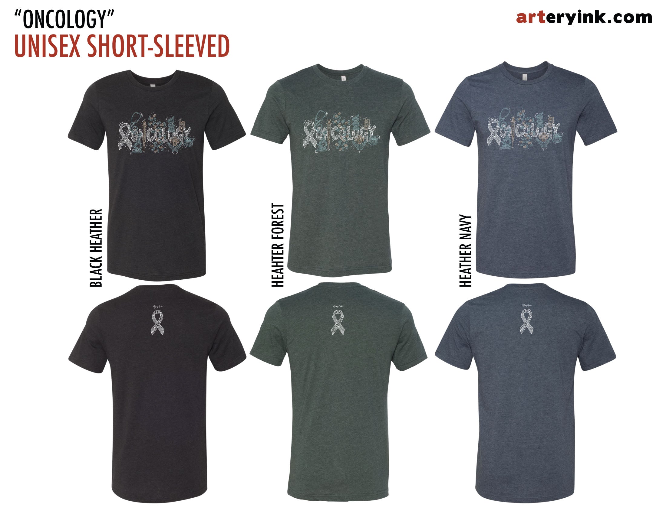 FRONT: "Oncology" Word Design (printed in white, light blue & peach)