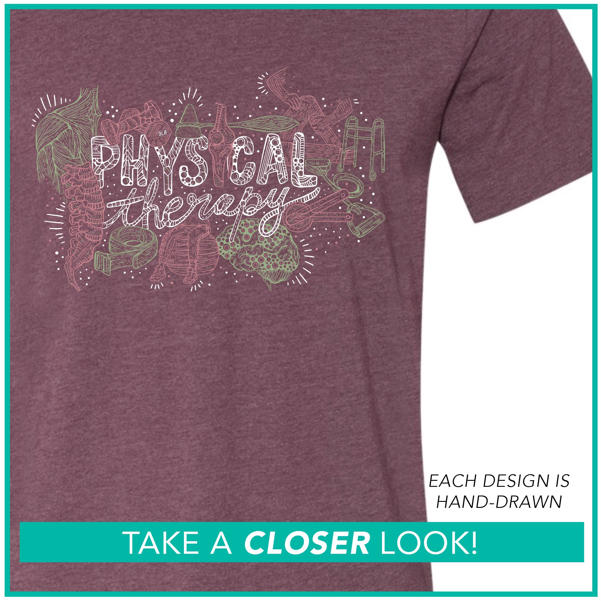 FRONT: "Physical Therapy" Word Design (printed in white, mauve, & green)