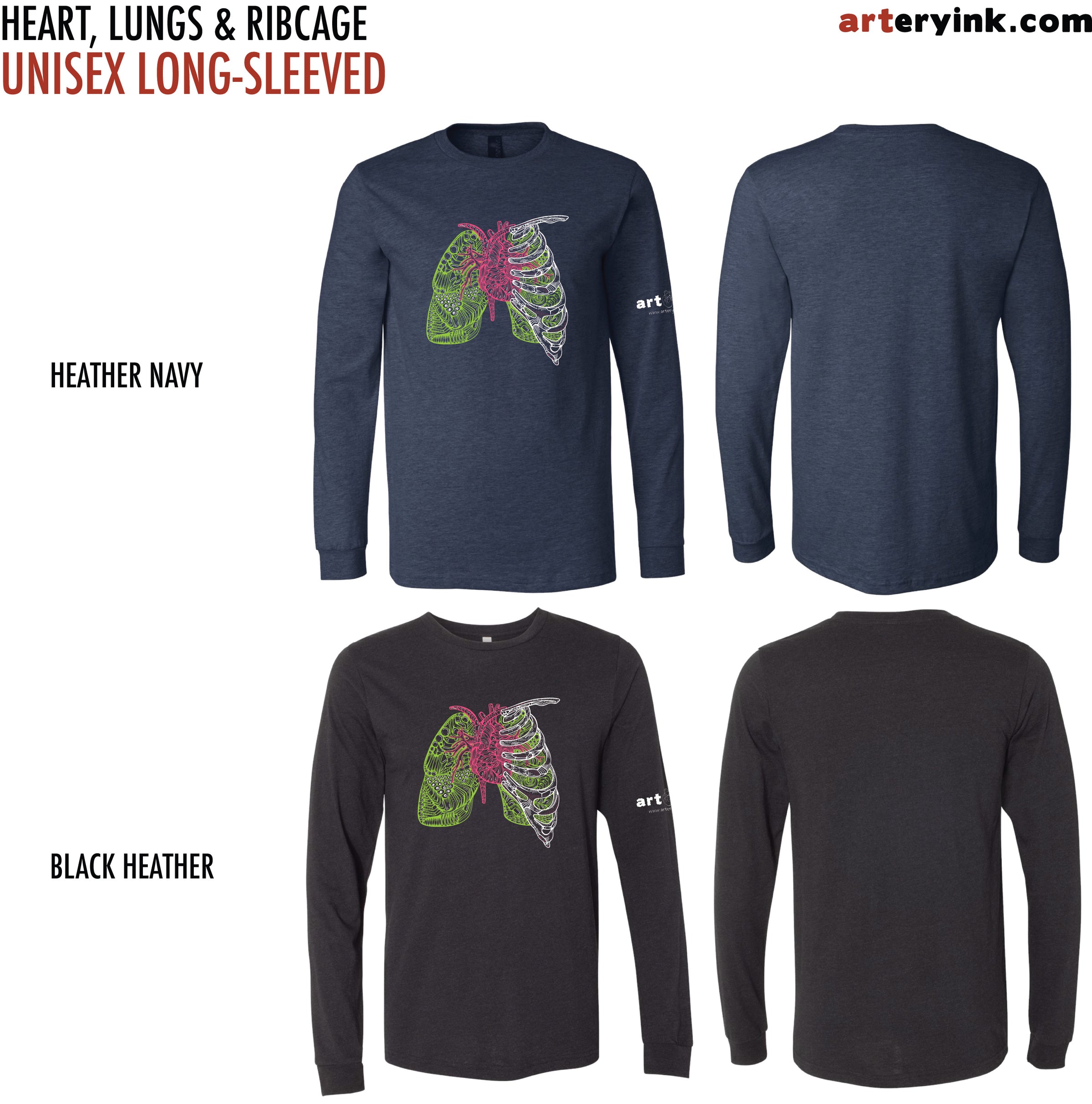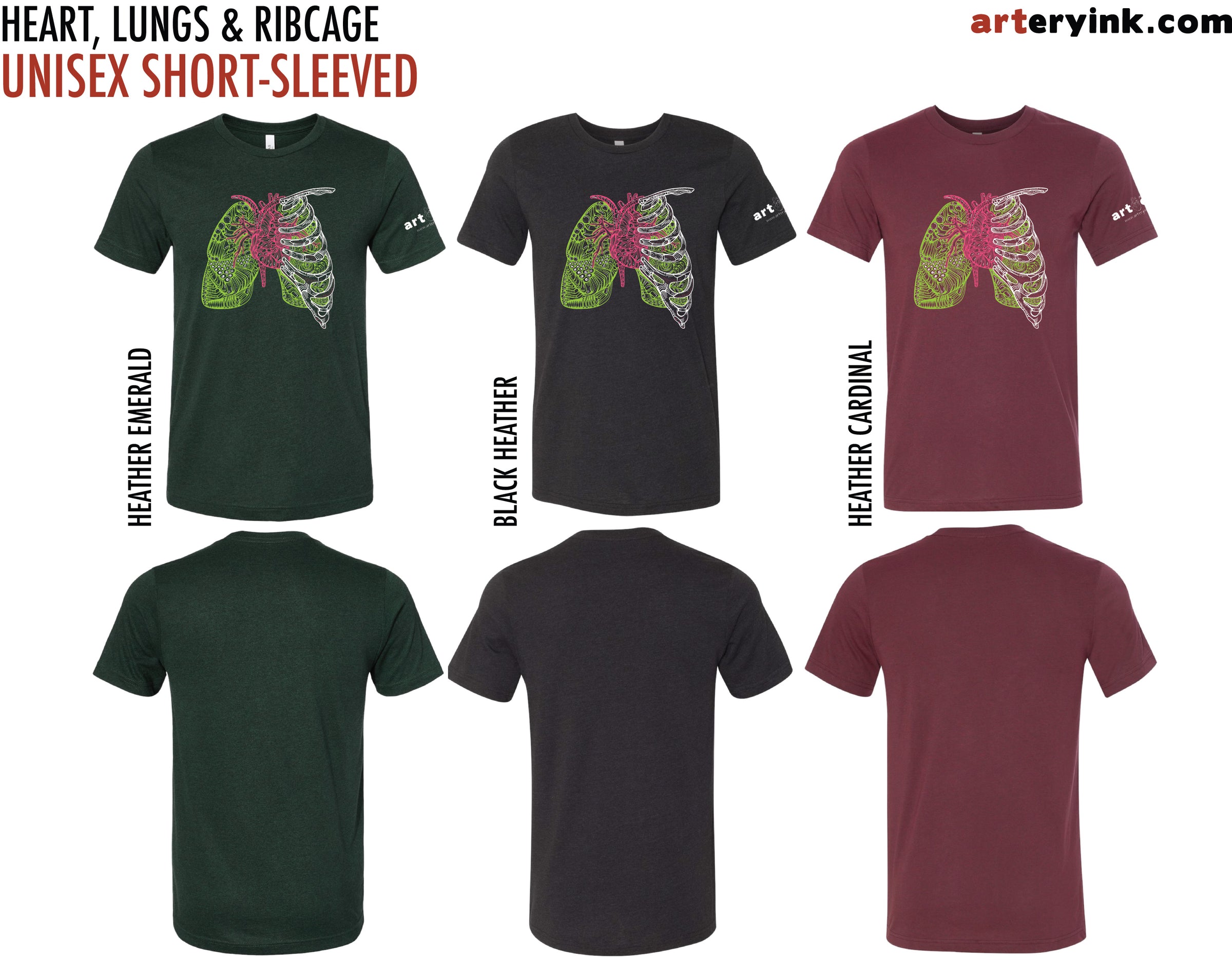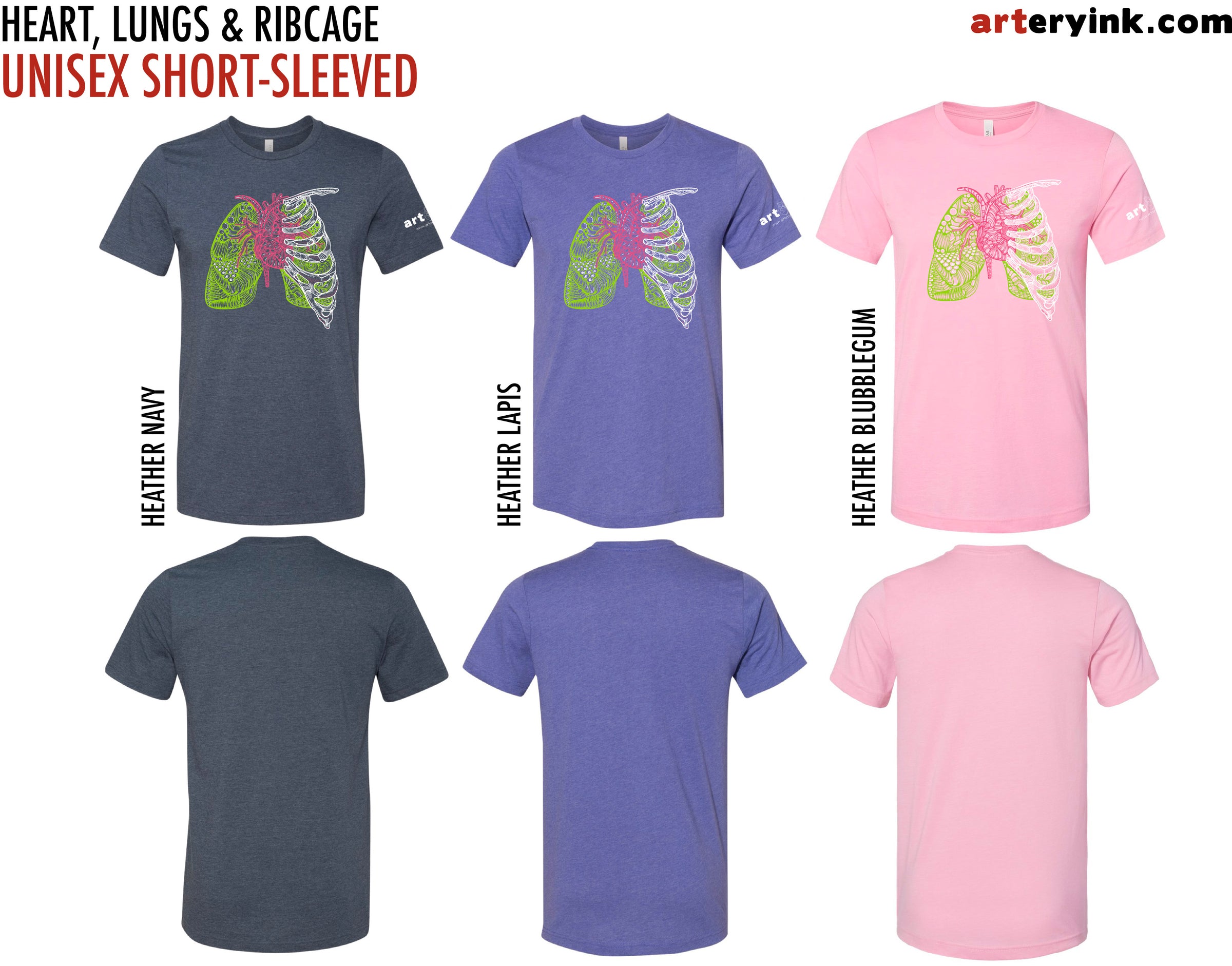 FRONT: Heart, Lungs & Ribcage Design (printed in white, magenta & lime green)