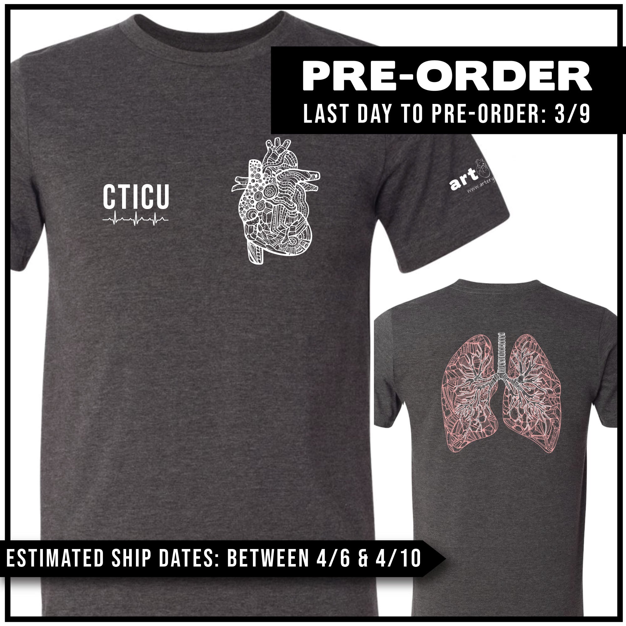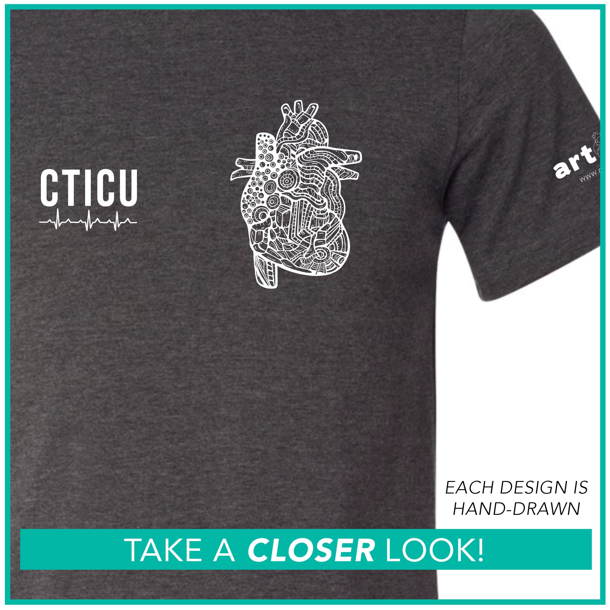 FRONT: "CTICU" + EKG Strip + Mini Heart