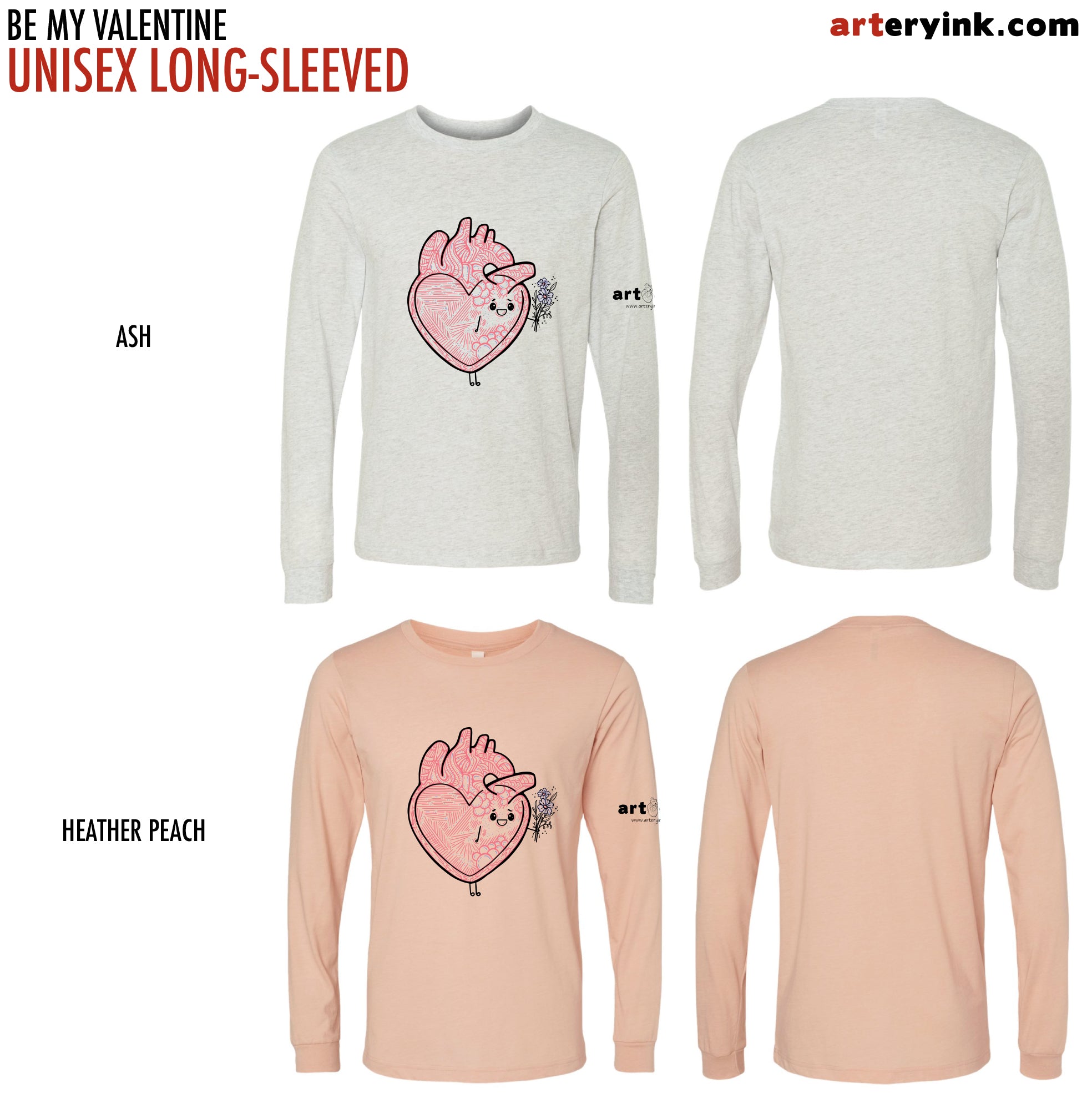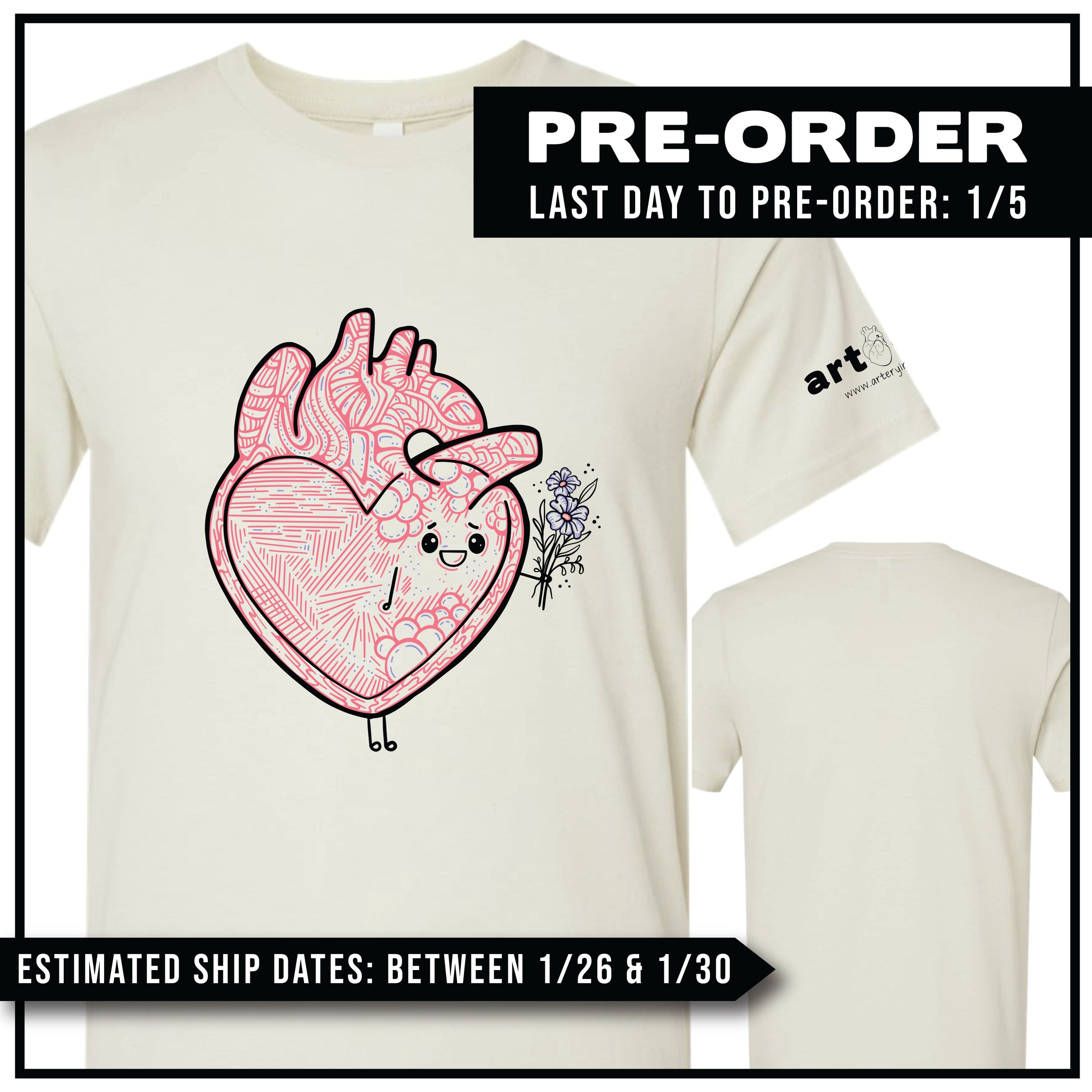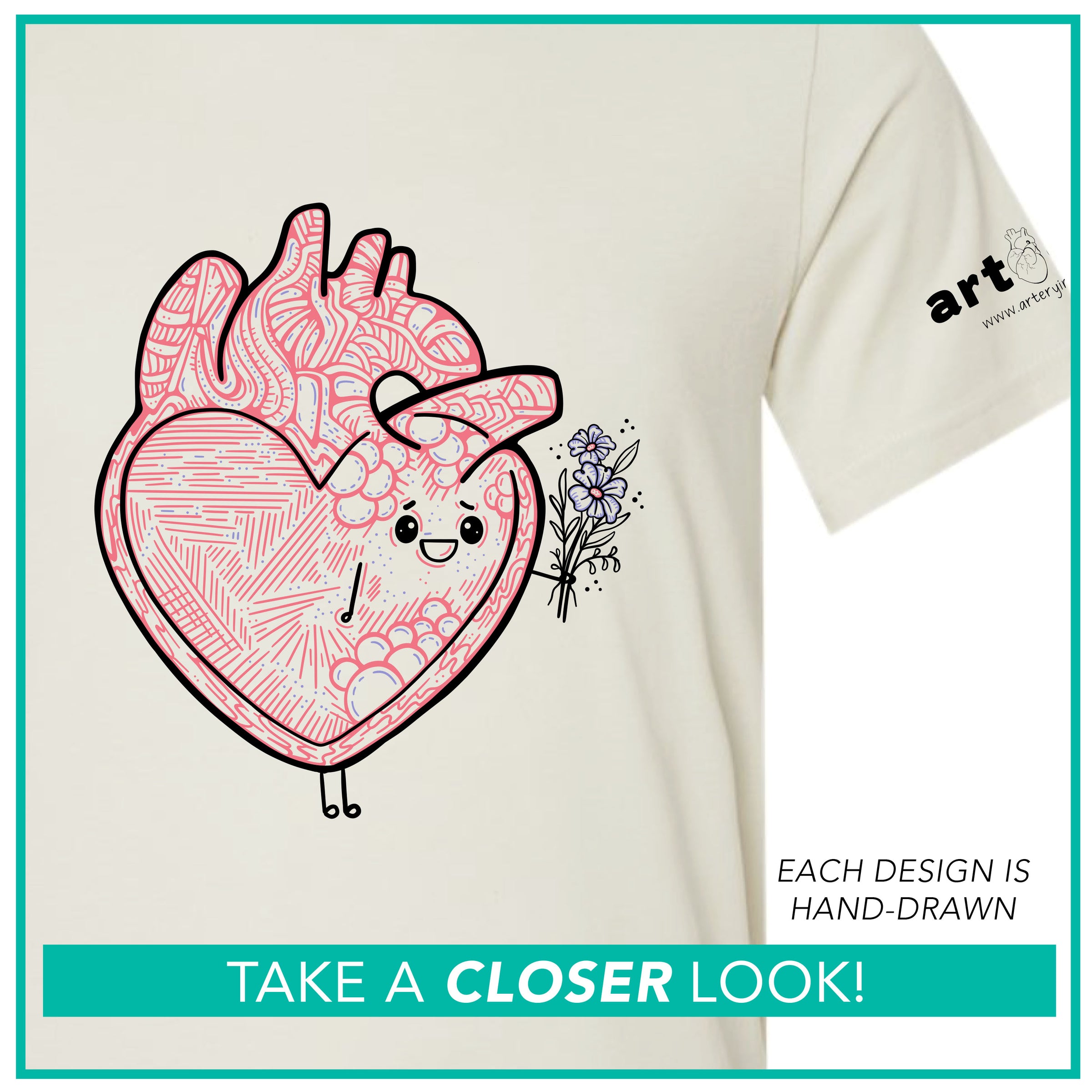 FRONT: Heart holding Flowers (printed in black, pink & purple)