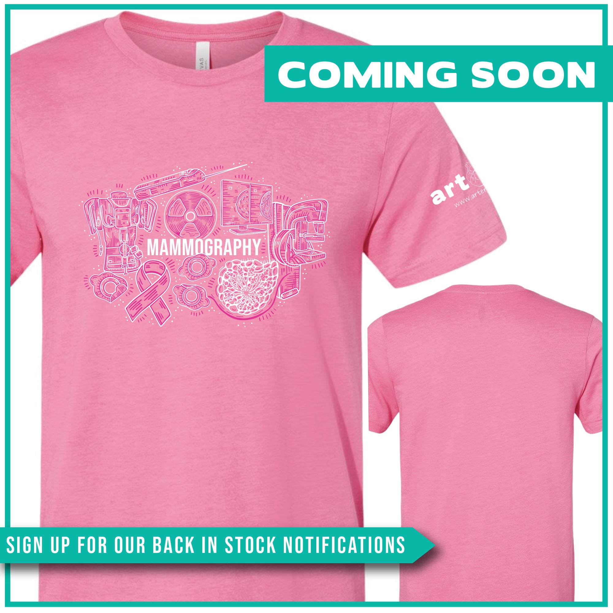 FRONT: "Mammography" Mini Icons Collage Design (printed in white & pink)